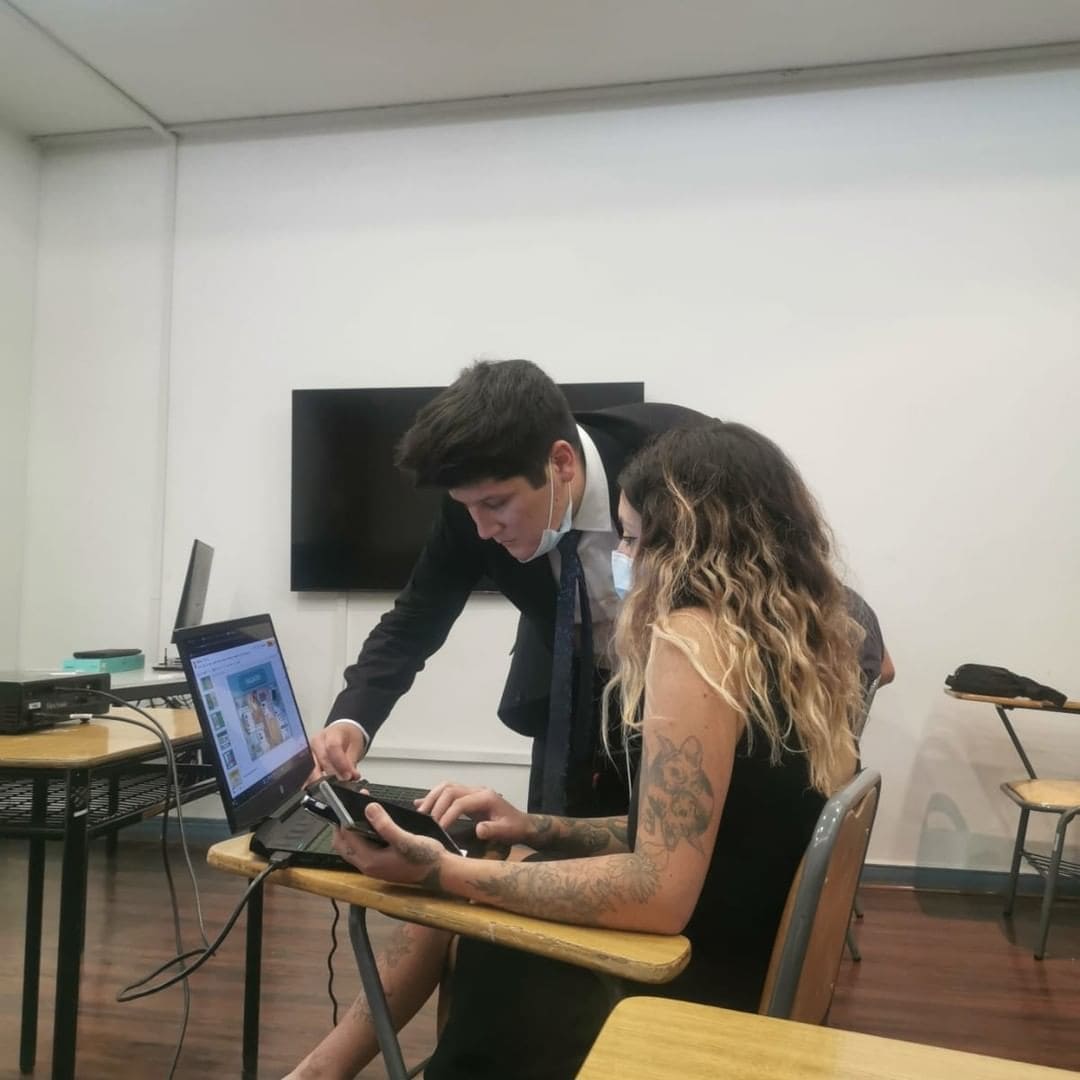 Los estudiantes realizaron presentaciones de sus proyectos en la sala de consejo, acompañados de sus profesores guía Alejandra Poblete, Pilar Correa y Diego Haristoy.