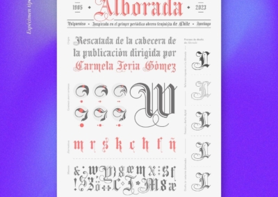 El proyecto tipográfico se inspira en el primer periódico obrero feminista “La Alborada” y entrega un espacio de reconocimiento a Carmela Jeria Gómez, fundadora en su labor tipográfica y periodística.
