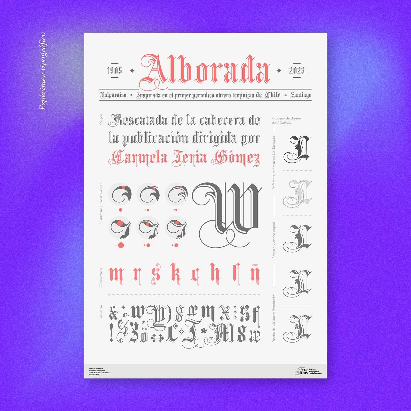 En el día de hoy queremos felicitar y reconocer a nuestra Diseñadora de Comunicaciones UTEM Camila Ríos (@ccmilarios), con motivo de que su proyecto tipográfico “Alborada” fue seleccionado en la Bienal de Tipografía Latino-Americana.