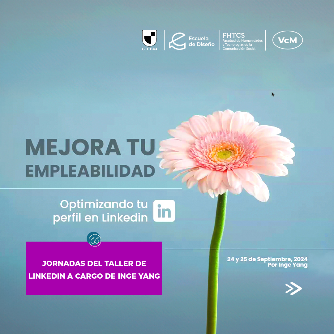 El pasado 24 y 25 de septiembre se desarrollaron las jornadas del Taller de @linkedin, ambas impartidas por Inge Yang Navarrete (@ingeyangn), Psicóloga UDP que cuenta con 9 años de experiencia en el sector de Reclutamiento y Selección. Dicha actividad se enmarca dentro del programa de vinculación “Diálogos con el medio – Diseño en 360°”.