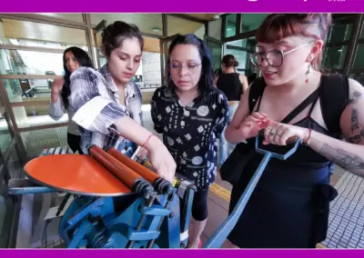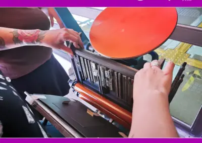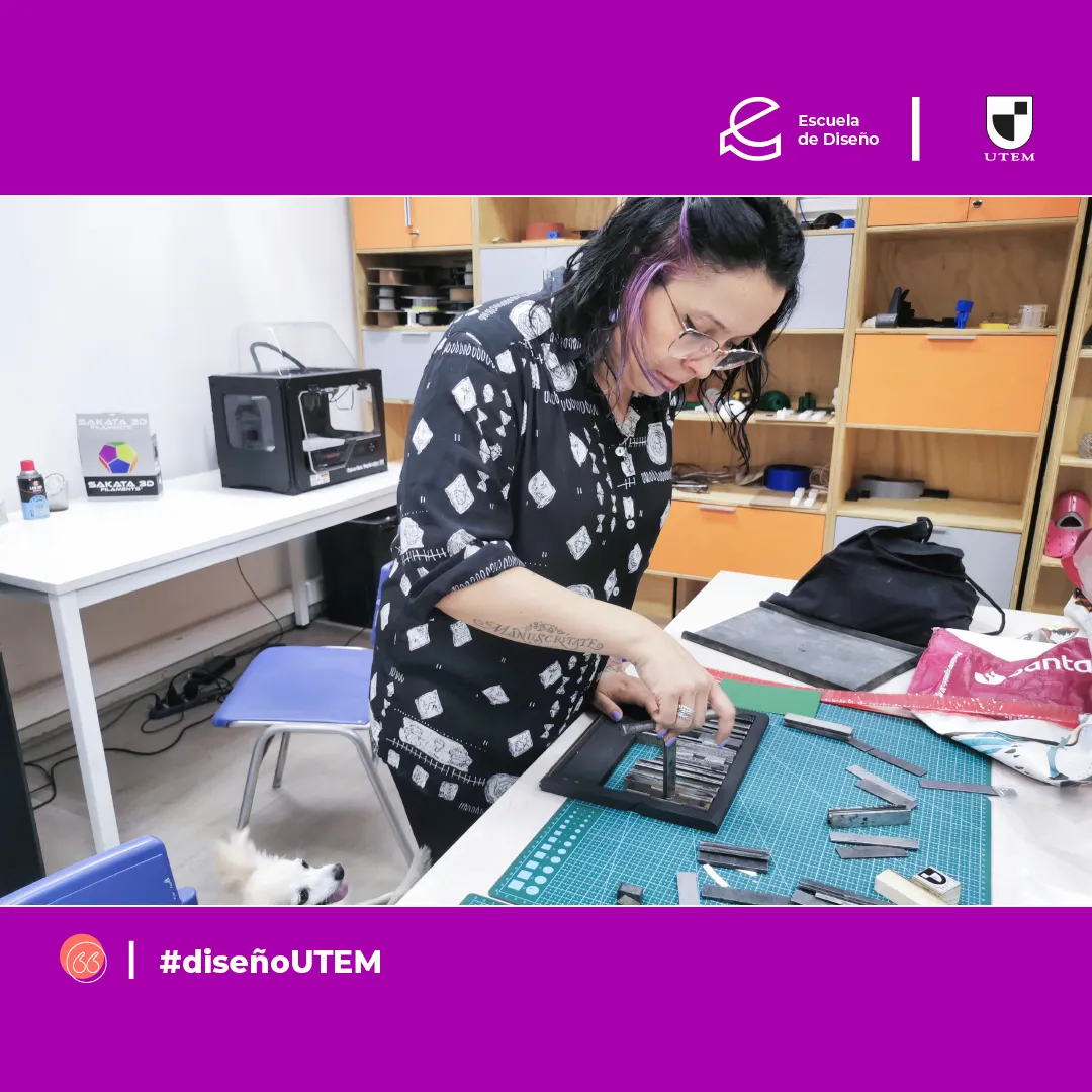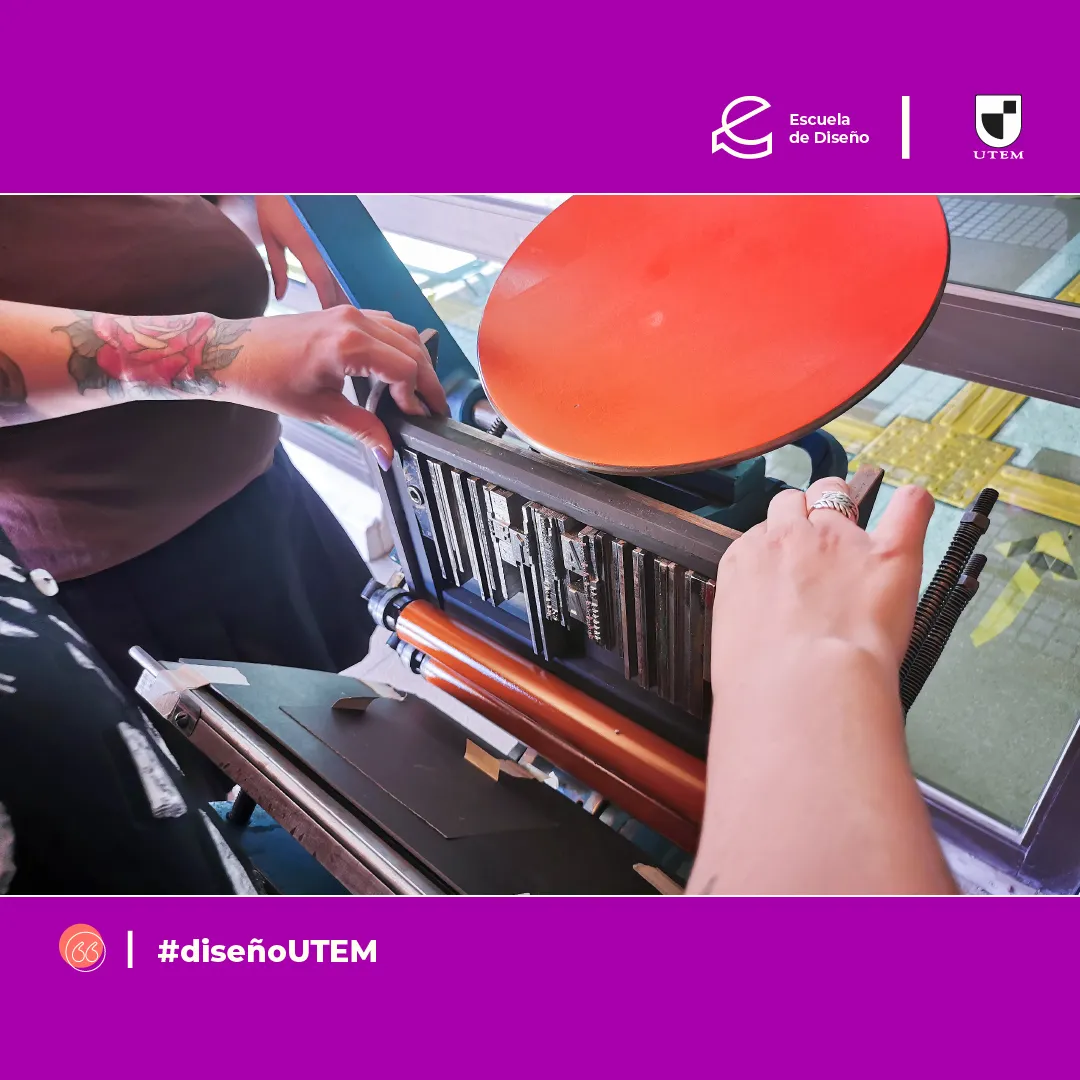 - Impresión análoga en Letterpress: docente Marcela Aguilera y ayudantes Marcela Toro, Francesca Monsalve y Samuel Valdés.