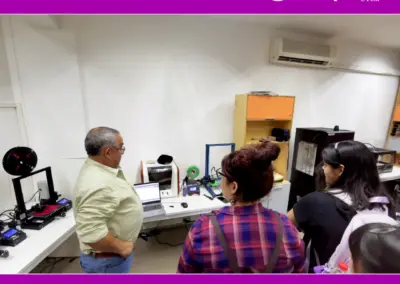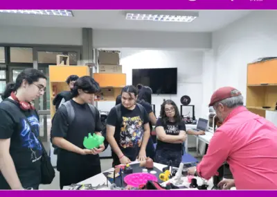 🤓 En grupos mixtos de ambas carreras, l@s estudiantes recorrieron los laboratorios y conocieron tanto los espacios como los recursos de trabajo disponibles para sus clases y proyectos. Así también, tuvieron la oportunidad de realizar ejercicios de prueba y revisar prototipos realizados en años anteriores.