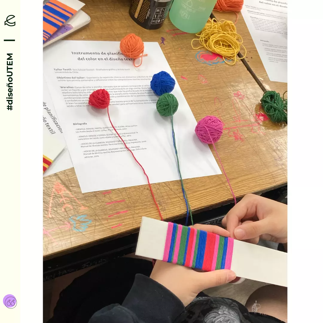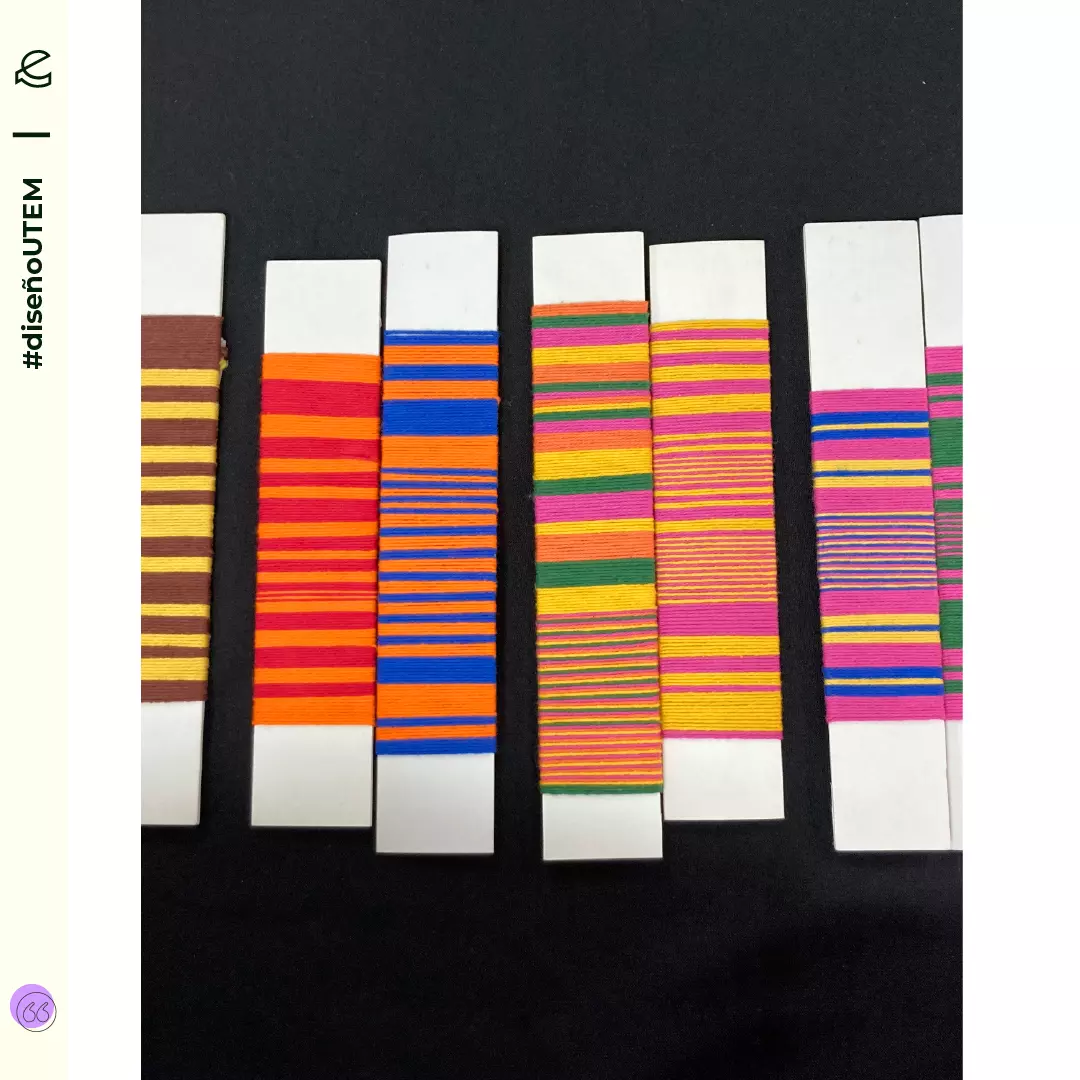 🧶 En la instancia los participantes realizaron cartas de colores, también conocidas como ‘warañas’, una herramienta de planificación cromática que trabaja distintos tipos de combinaciones para coloración, organizando patrones o unidades en un sistema de enrollar hilos. El objetivo del taller fue experimentar con elementos urdimbres a través de la repetición rítmica de colores, con el fin de contemplar y reflexionar sobre las composiciones textiles resultantes.