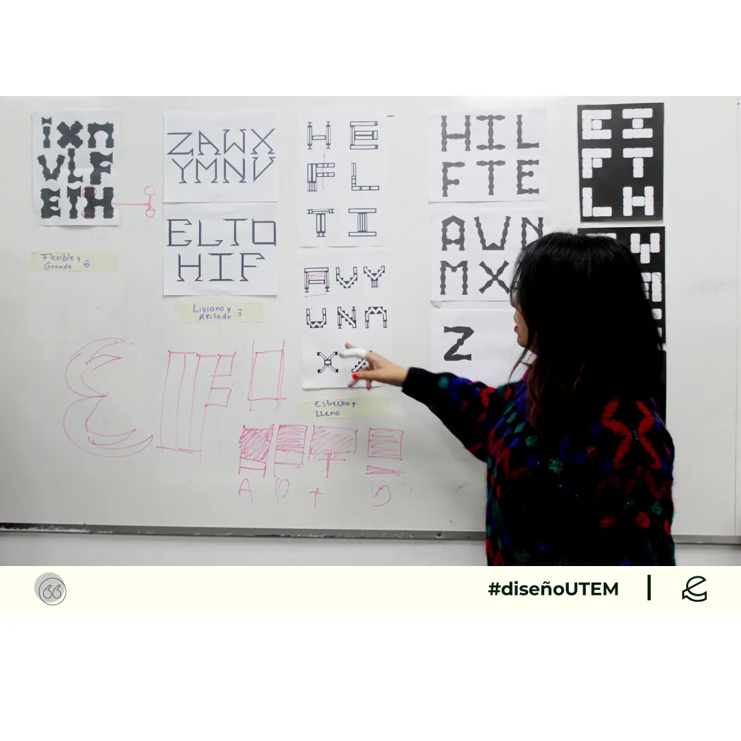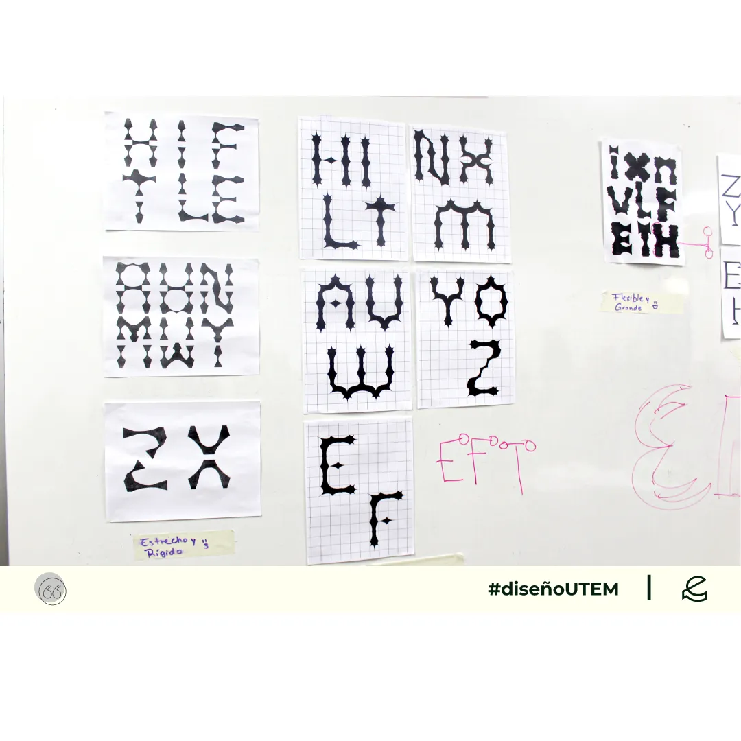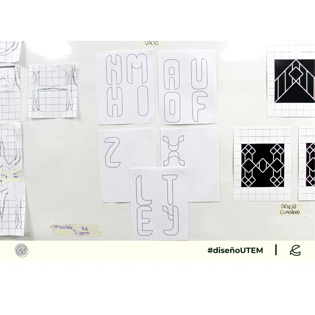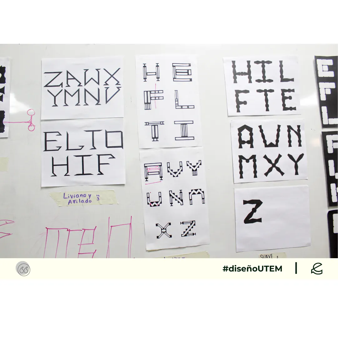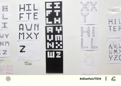 En este proyecto los estudiantes diseñan un sistema tipográfico a partir de dos características formales elegidos por ellos. Cada módulo debe representarlas en la forma, trazo y composición.