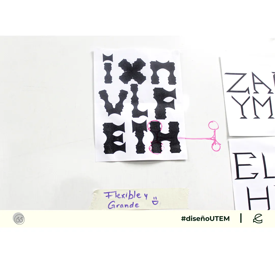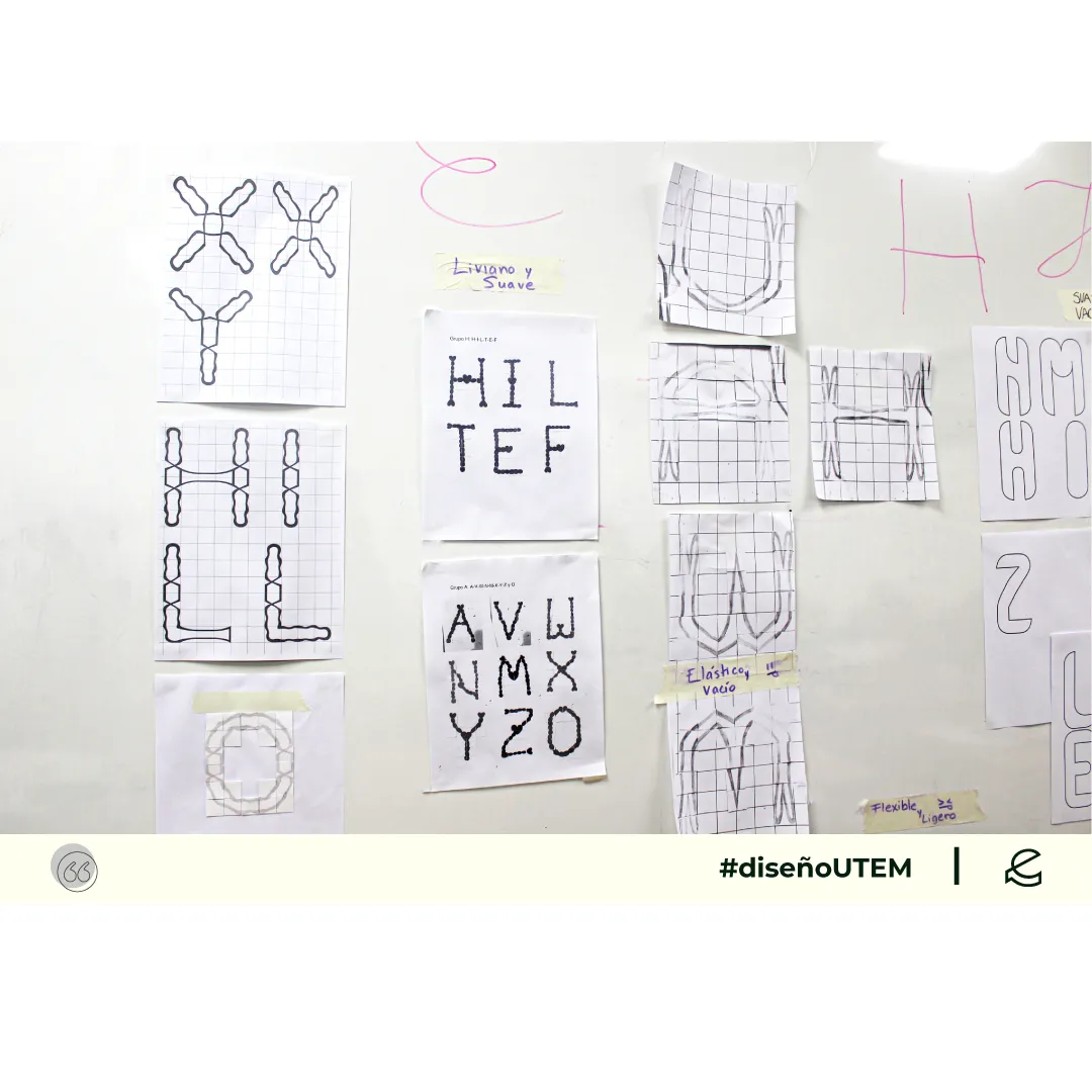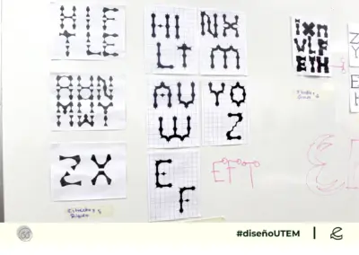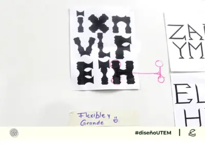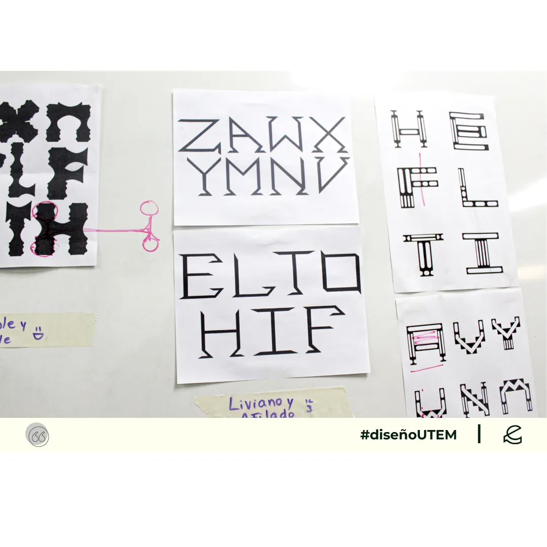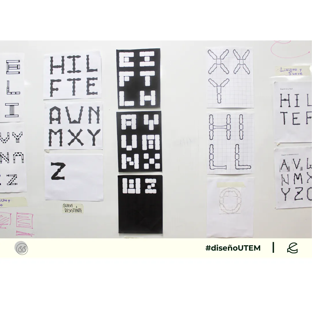 En este proyecto los estudiantes diseñan un sistema tipográfico a partir de dos características formales elegidos por ellos. Cada módulo debe representarlas en la forma, trazo y composición.