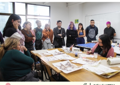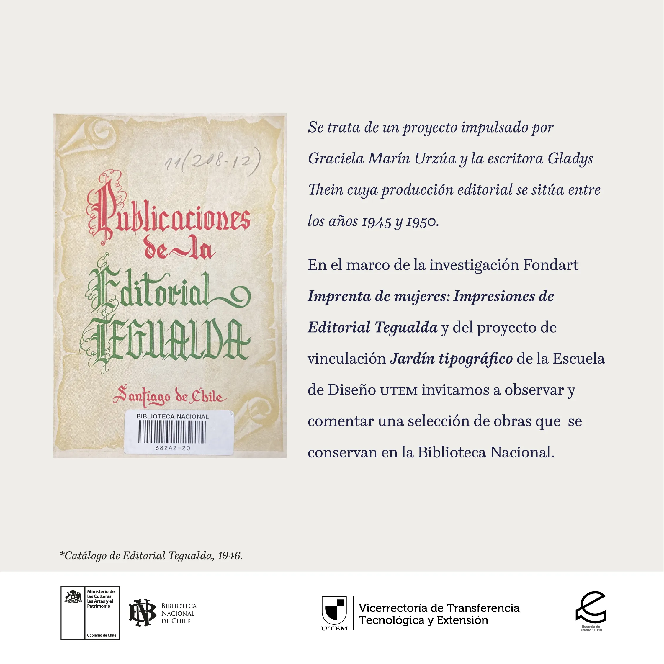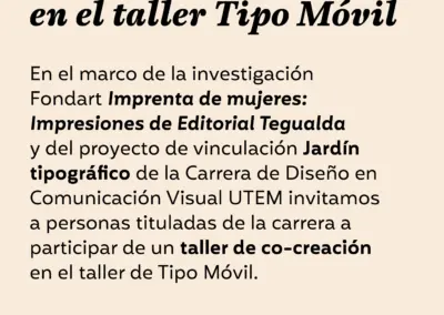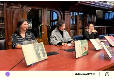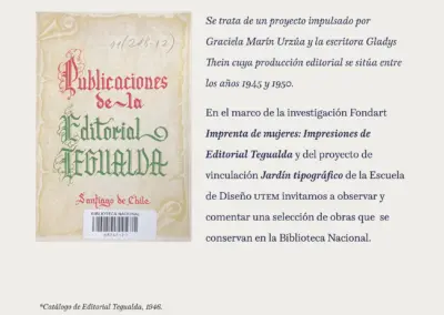 En la actividad estuvieron presentes Soledad Abarca (@solabarca) directora de la Biblioteca, además de nuestras profesoras Marcela Aguilera (@lanascribe) y Andrea Meza (@macameza), responsable de la investigación FONDART “Imprenta de mujeres: impresiones de Editorial Tegualda (1945-1950)”.