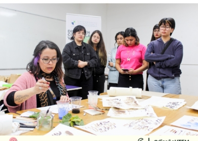 Los asistentes pudieron revisar en detalle la impresión de estos libros publicados y conservados en la biblioteca, además de conversar sobre su contenido y la historia detrás de cada ejemplar, conociendo así un poco más sobre esta editorial dirigida por mujeres.