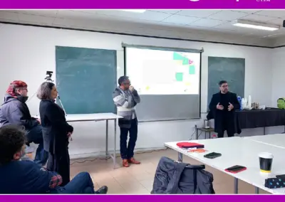 🏚️ Dicho proyecto que une a ambas carreras exploró una oportunidad de desarrollo turístico patrimonial en los barrios Dieciocho, Huemul, Yungay, Franklin y República, todos ubicados en la comuna de Santiago. Esto se traduce en la exposición de plataformas digitales como aplicaciones móviles, juegos interactivos y sitios web. Uno de ellos es ‘Cachureando Geek’ realizado por Felipe Yáñez, Manuel Droguett, Gabriel Rivas y Antonio Alvarado desde Visual, además de Max Pineda y Rodrigo Carrasco por Turística.