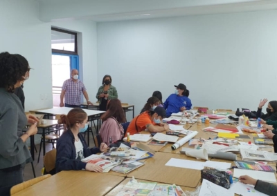 Dicho taller fue dirigido por Patricia Hidalgo y María Teresa Madariaga, ambas “Tesoros Humano Vivo” y el objetivo principal fue contribuir colaborativamente a la valoración del patrimonio cultural inmaterial Chileno, dando a conocer el trabajo de arpillera y bordado. El resultado se resume en un mural colectivo de 3 x 1,5 metros aprox, el cual refleja aspectos de la memoria personal, familiar o social de las y los participantes.