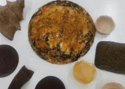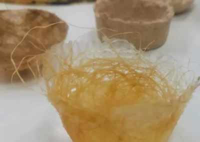 En esta asignatura, donde se analiza la relación del diseño de productos con el medio y su impacto ambiental, se realizó un taller de biomateriales, con el propósito de generar una visión amplia sobre el ciclo de vida de los materiales v/s el ciclo de vida útil de los productos, tanto de biomateriales como materiales tradicionales.