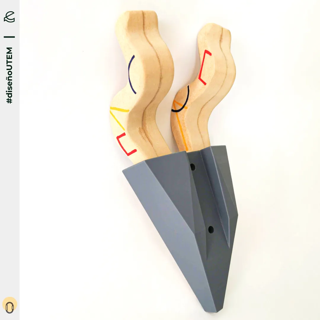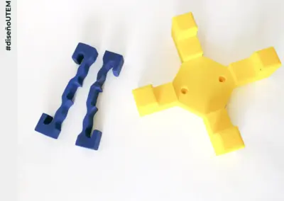 En este proyecto los estudiantes realizaron diferentes diseños de conectores para colgar elementos u objetos inusuales.
