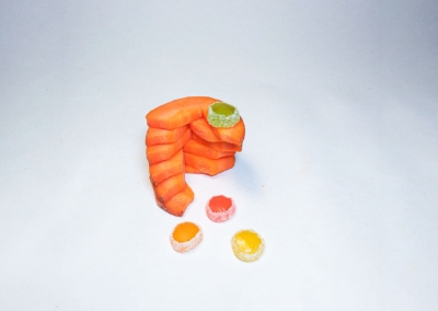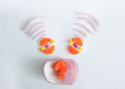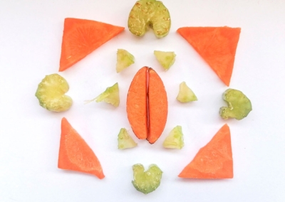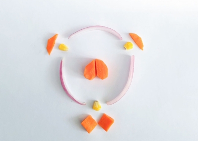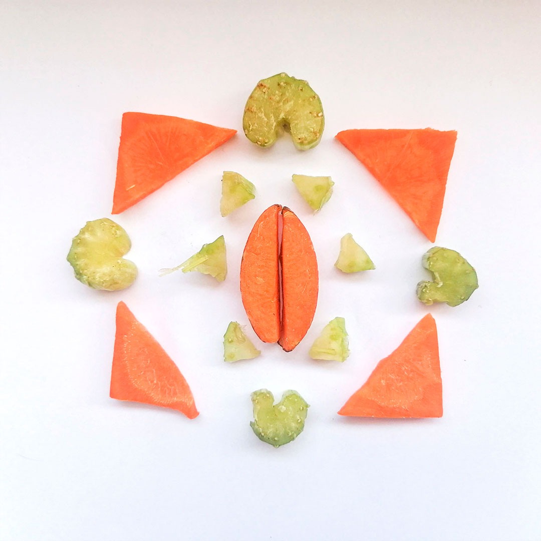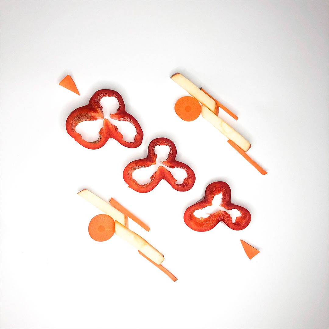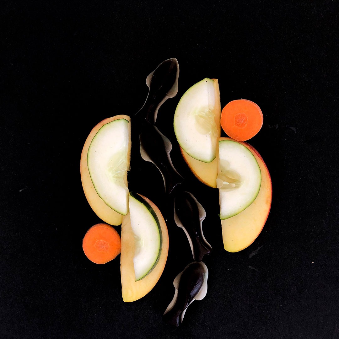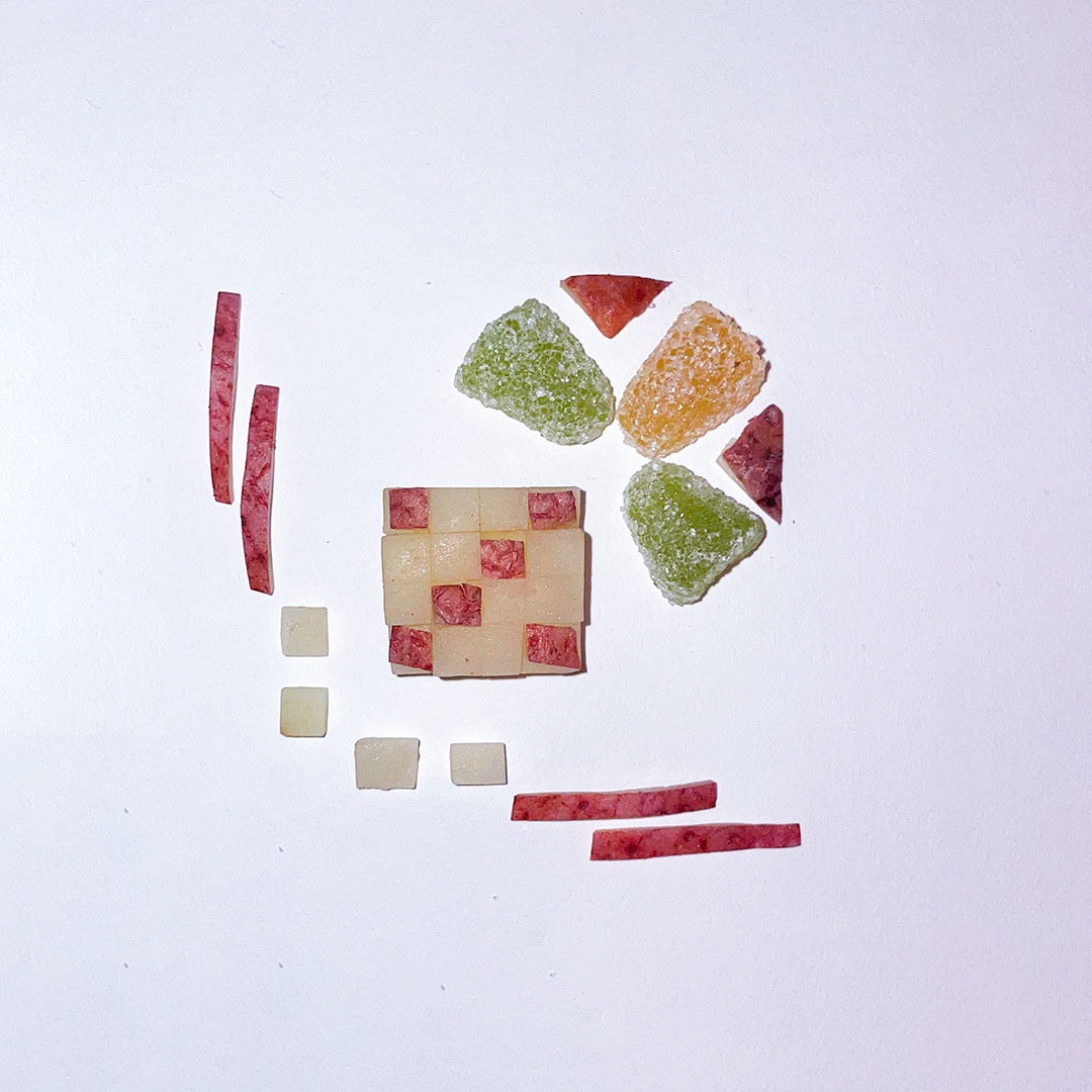 En este caso, mostramos el proceso de disección de elementos comestibles, donde los estudiantes tuvieron que realizar estructuras y formas a partir de comida. Se realizaron diferentes patrones en el canvas, como bocetos previos a la composición digital.
