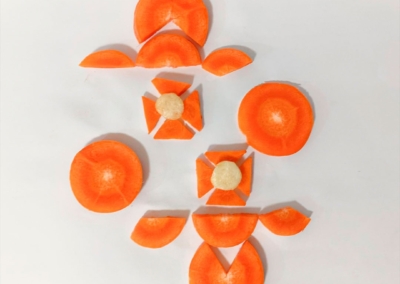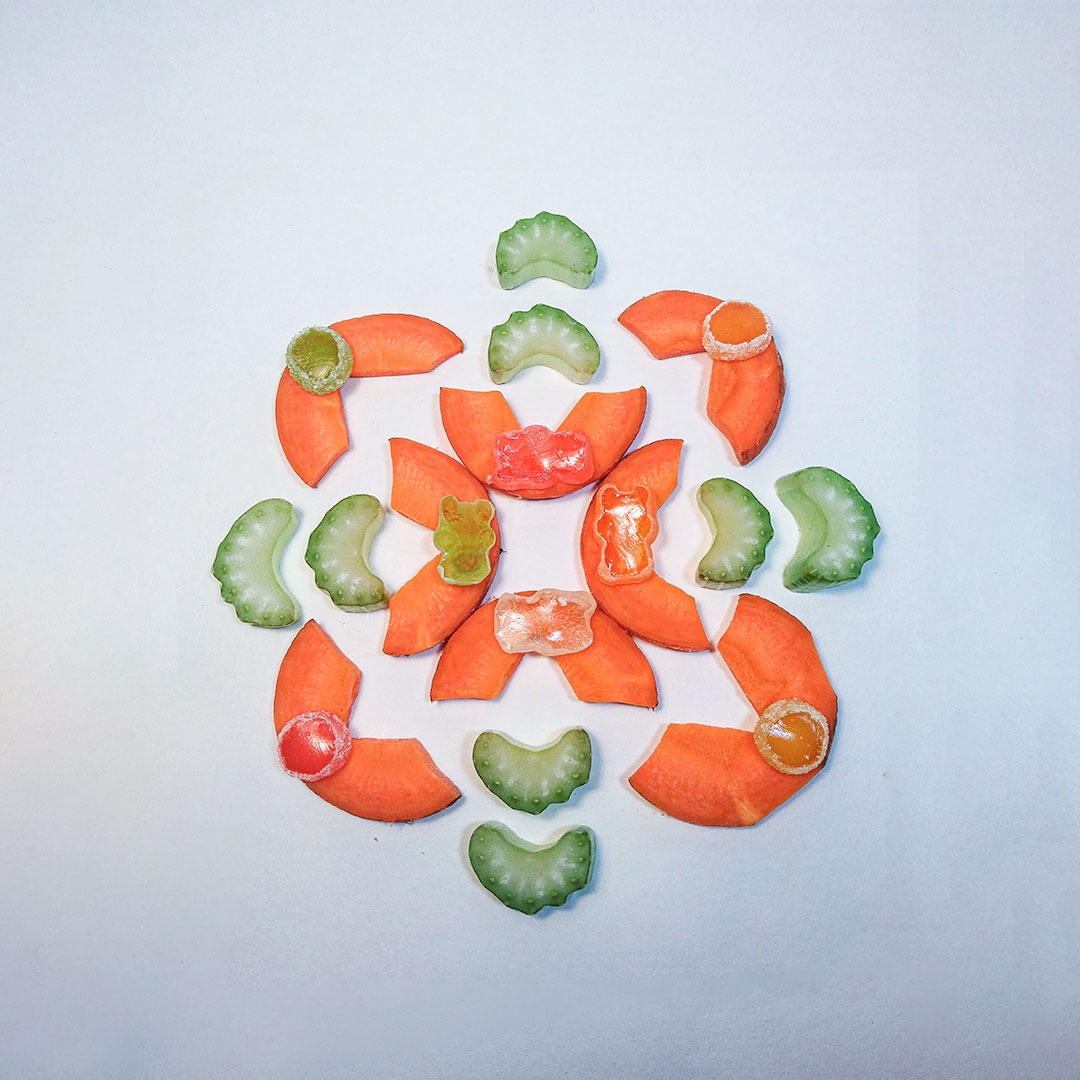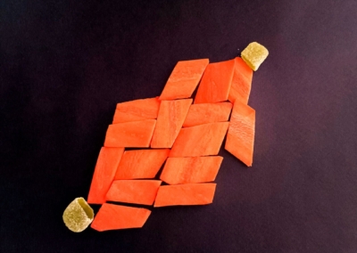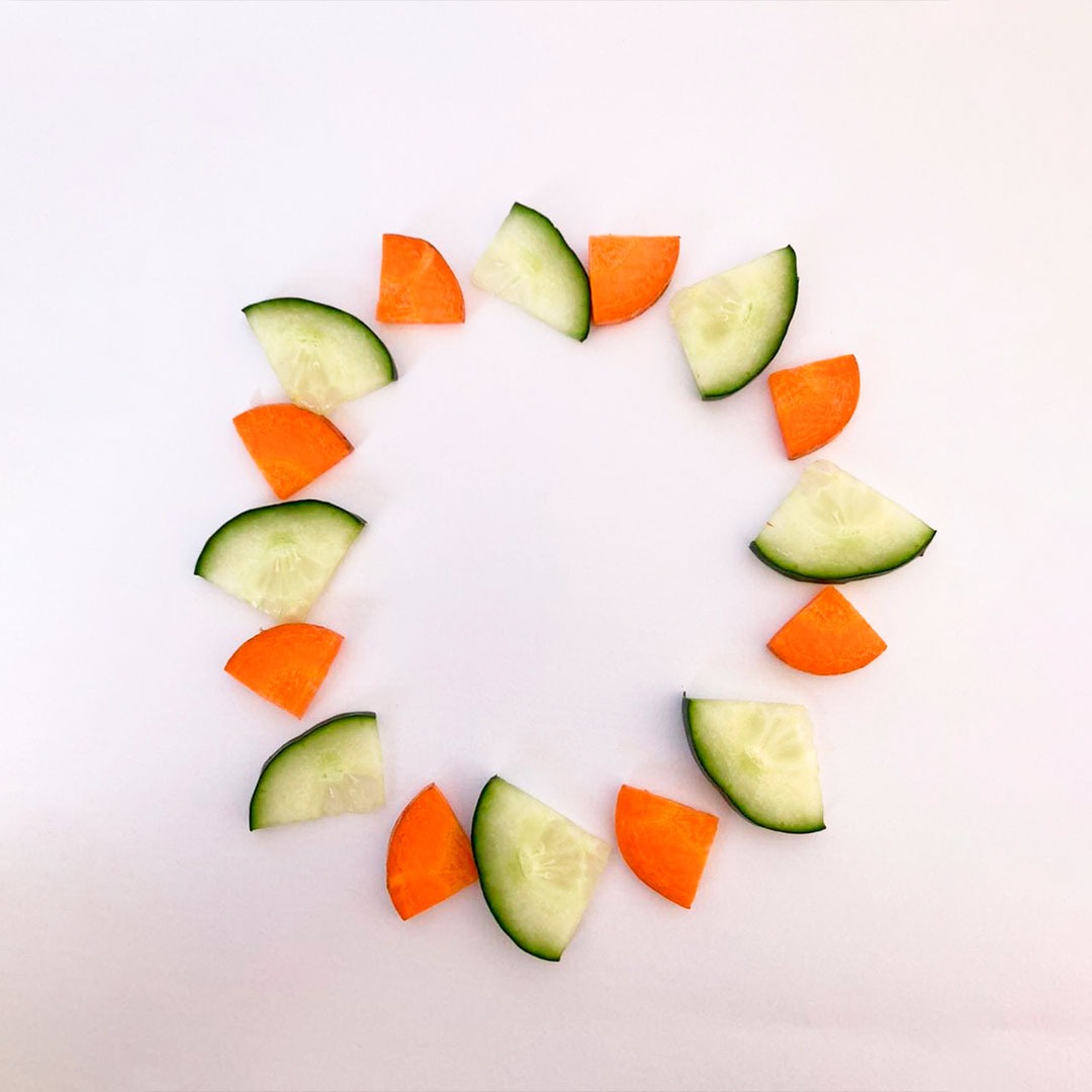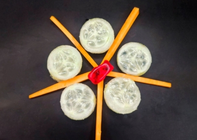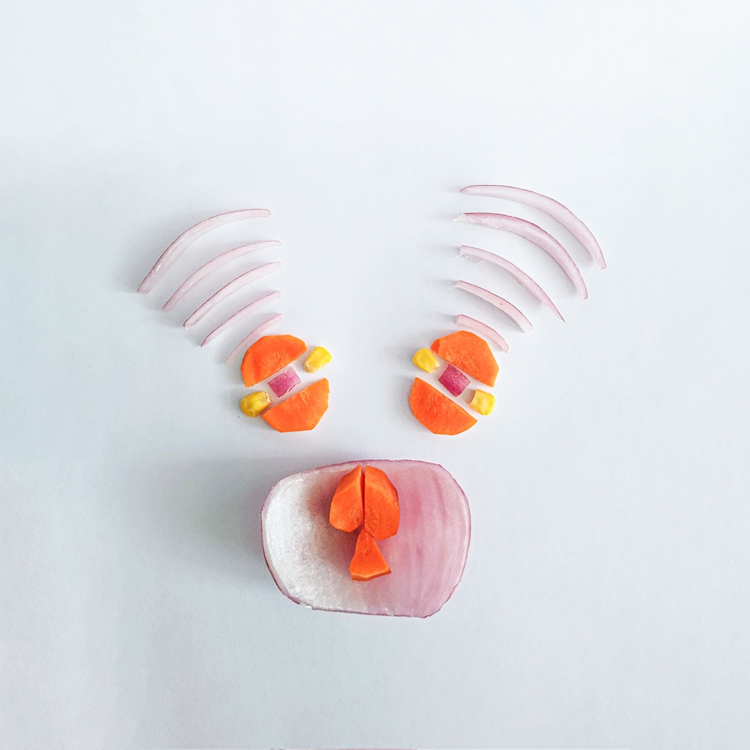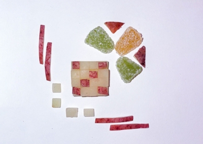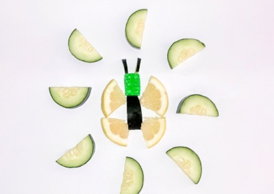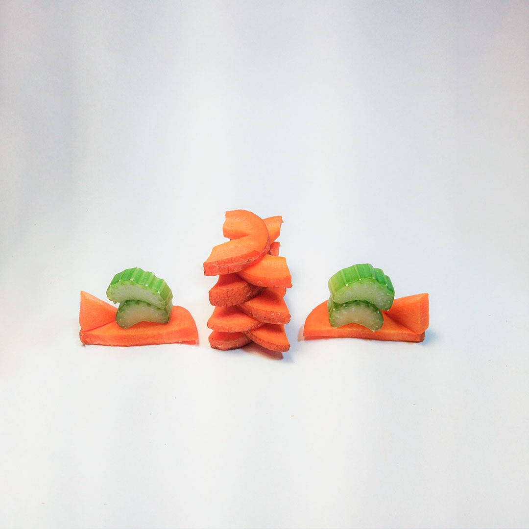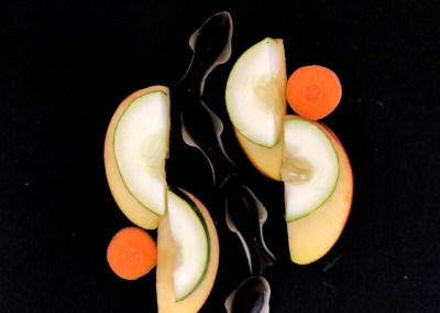 En este caso, mostramos el proceso de disección de elementos comestibles, donde los estudiantes tuvieron que realizar estructuras y formas a partir de comida. Se realizaron diferentes patrones en el canvas, como bocetos previos a la composición digital.