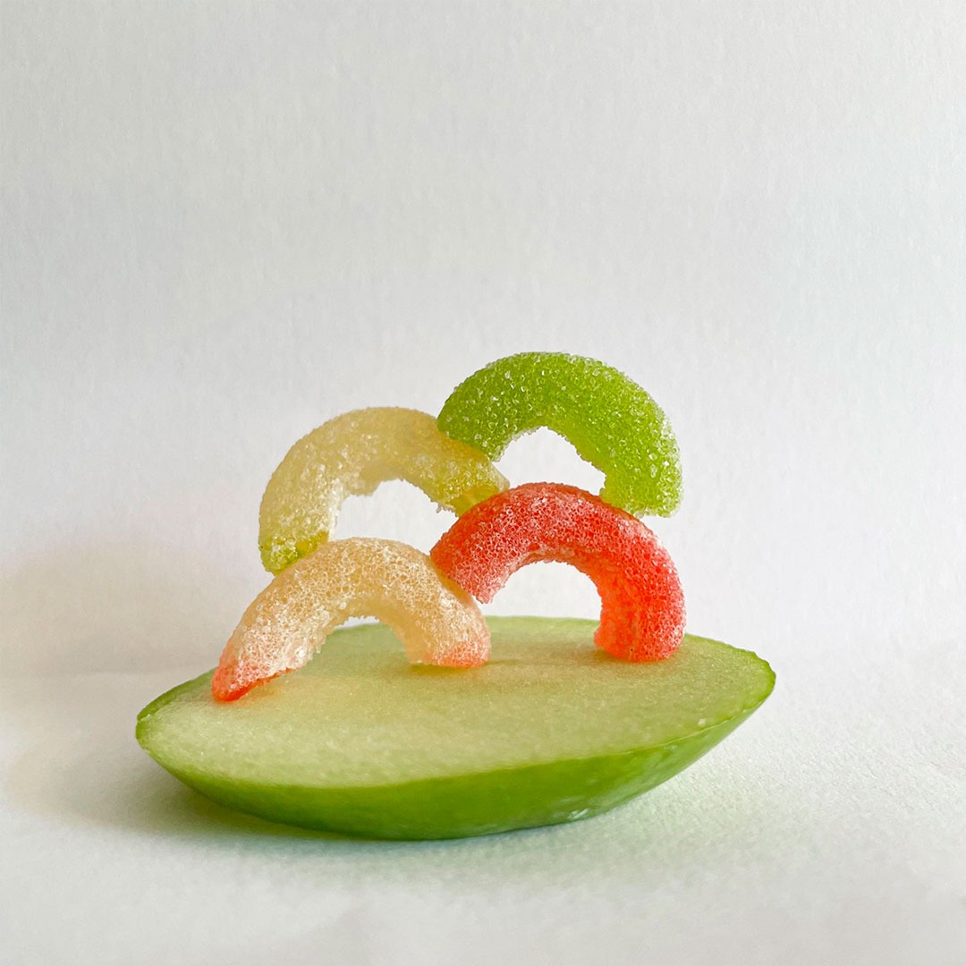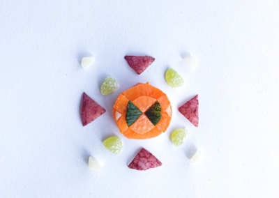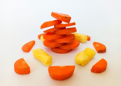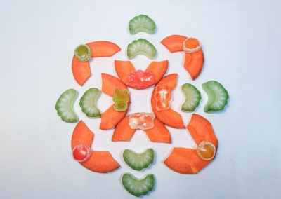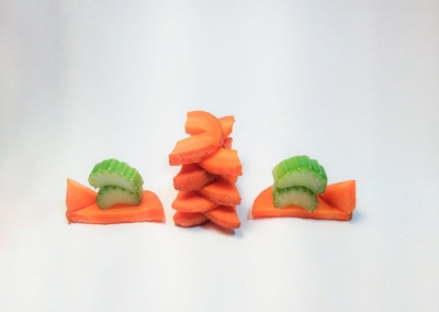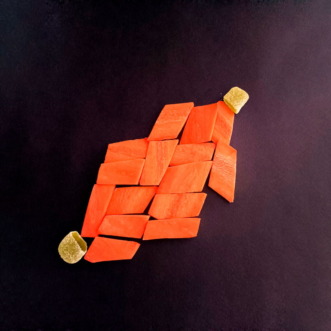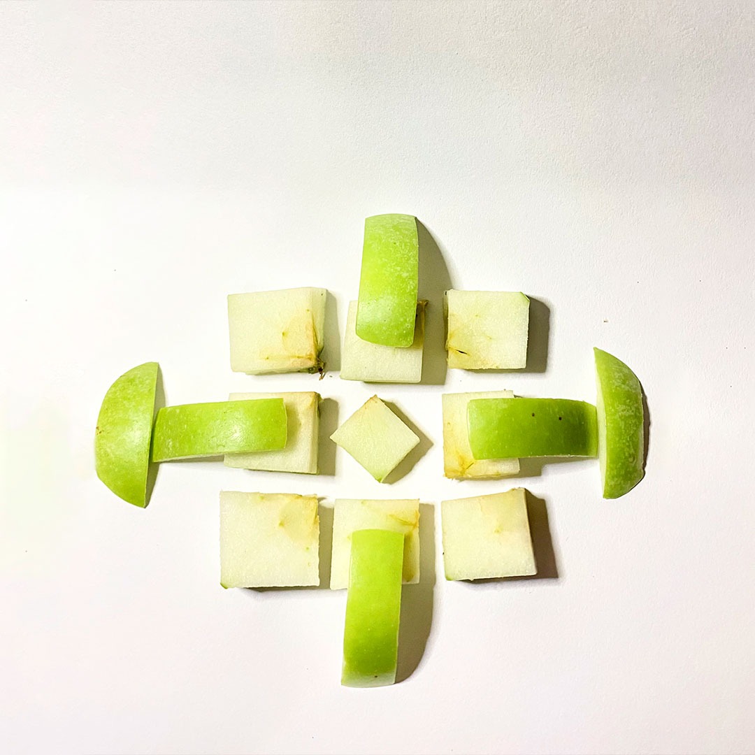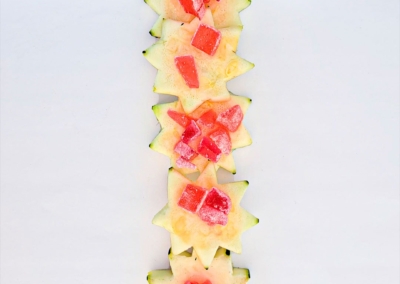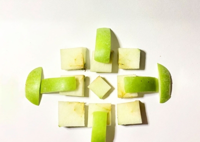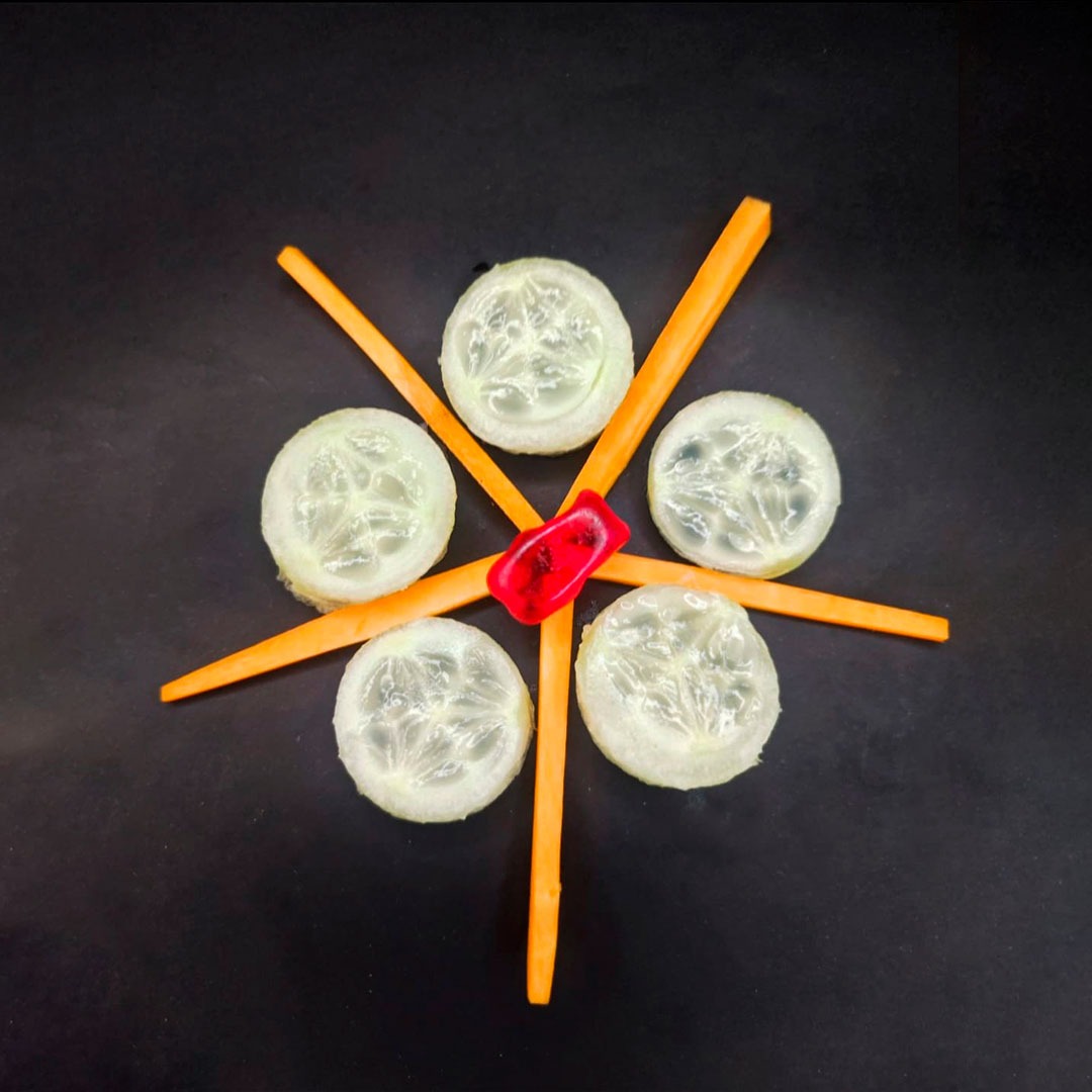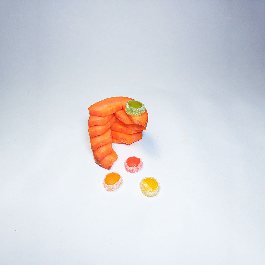 En este caso, mostramos el proceso de disección de elementos comestibles, donde los estudiantes tuvieron que realizar estructuras y formas a partir de comida. Se realizaron diferentes patrones en el canvas, como bocetos previos a la composición digital.