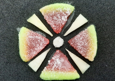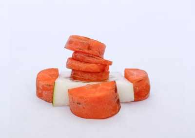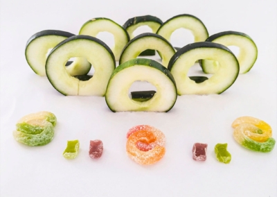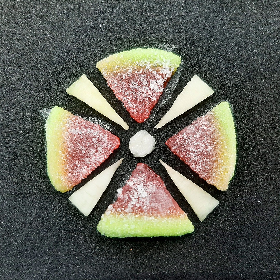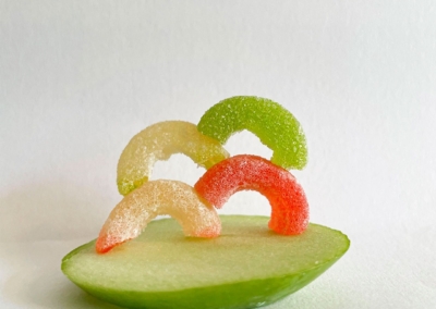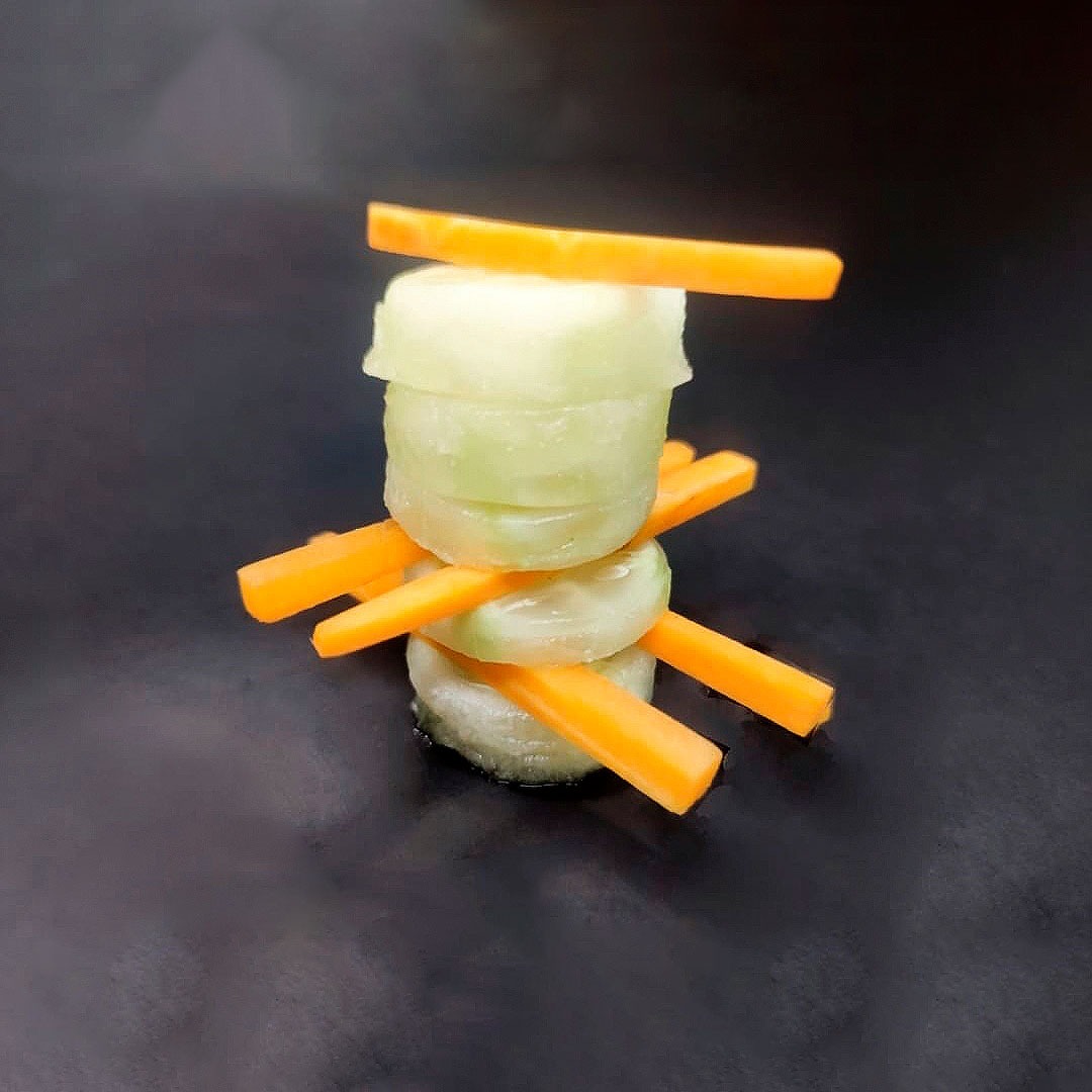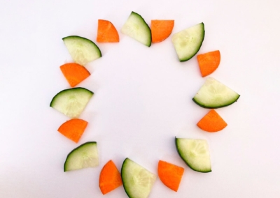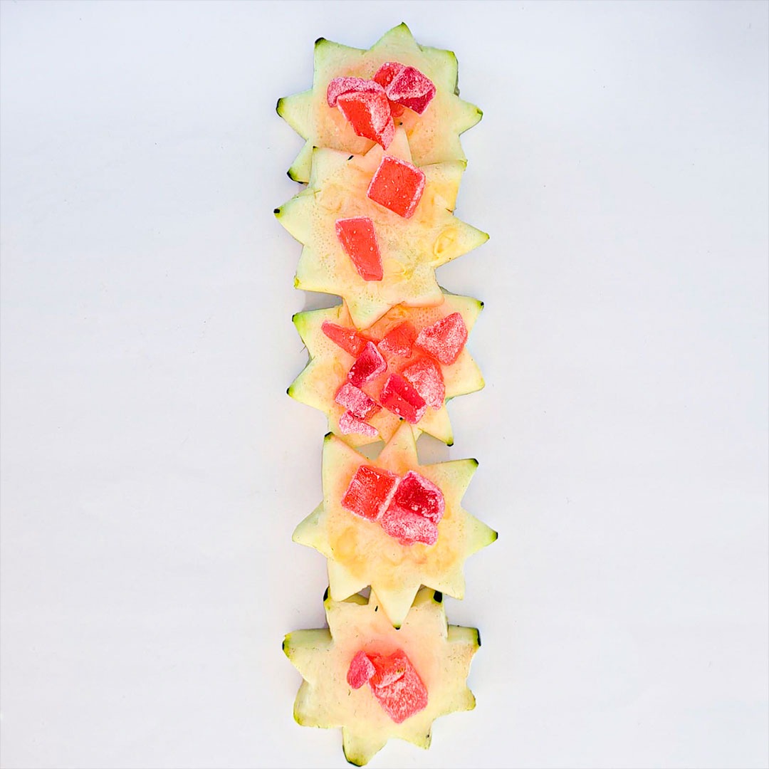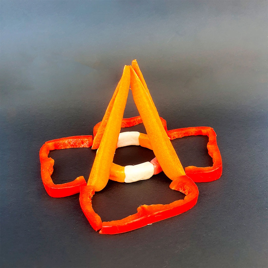 En este caso, mostramos el proceso de disección de elementos comestibles, donde los estudiantes tuvieron que realizar estructuras y formas a partir de comida. Se realizaron diferentes patrones en el canvas, como bocetos previos a la composición digital.