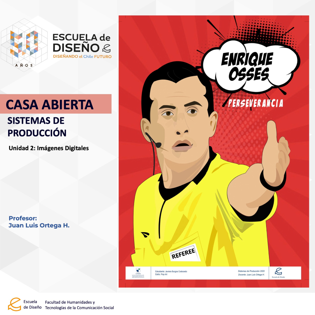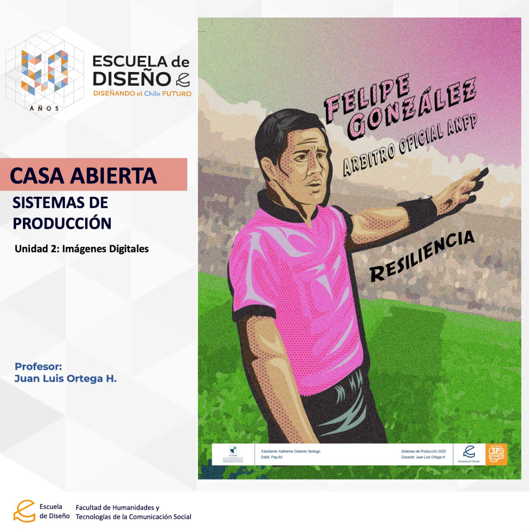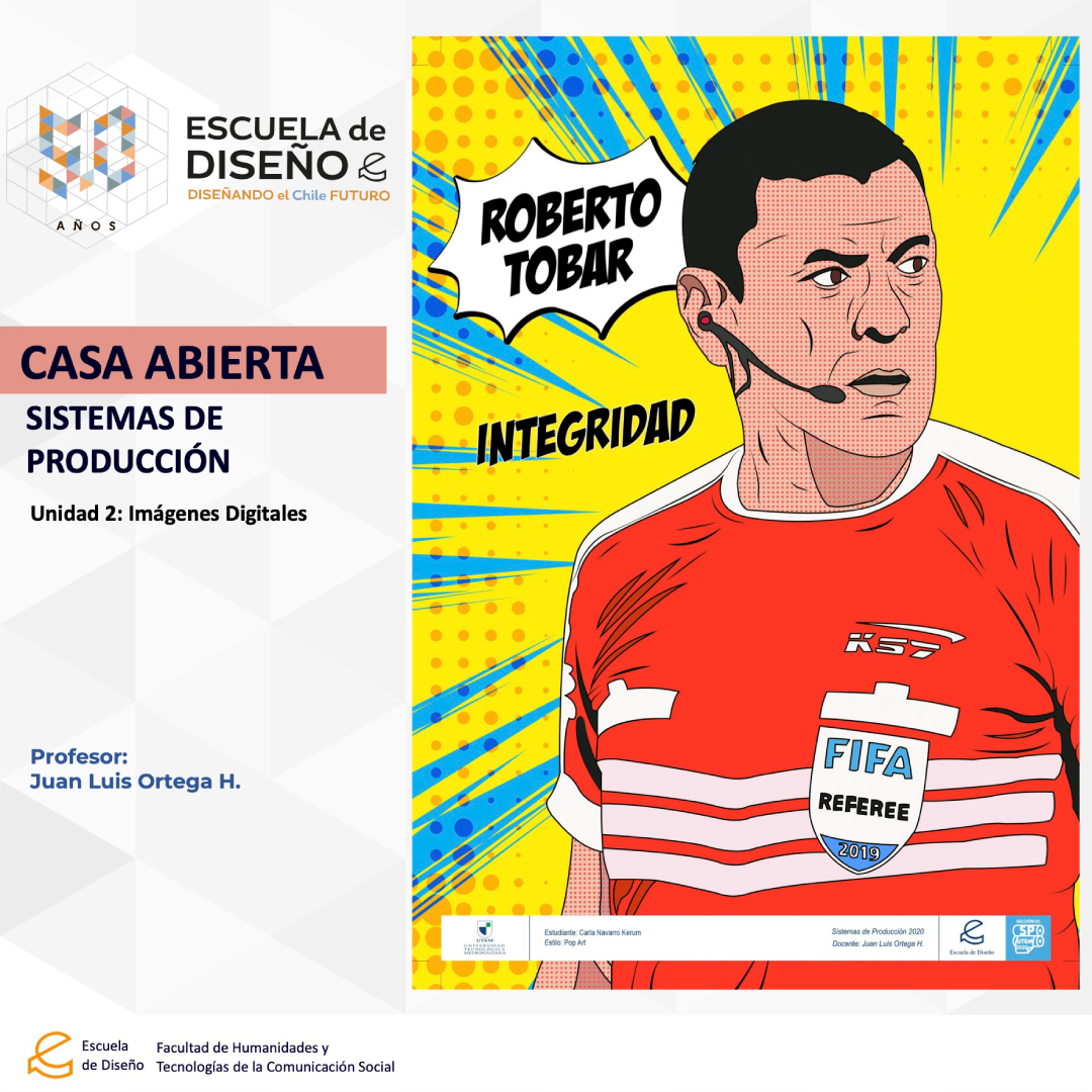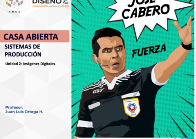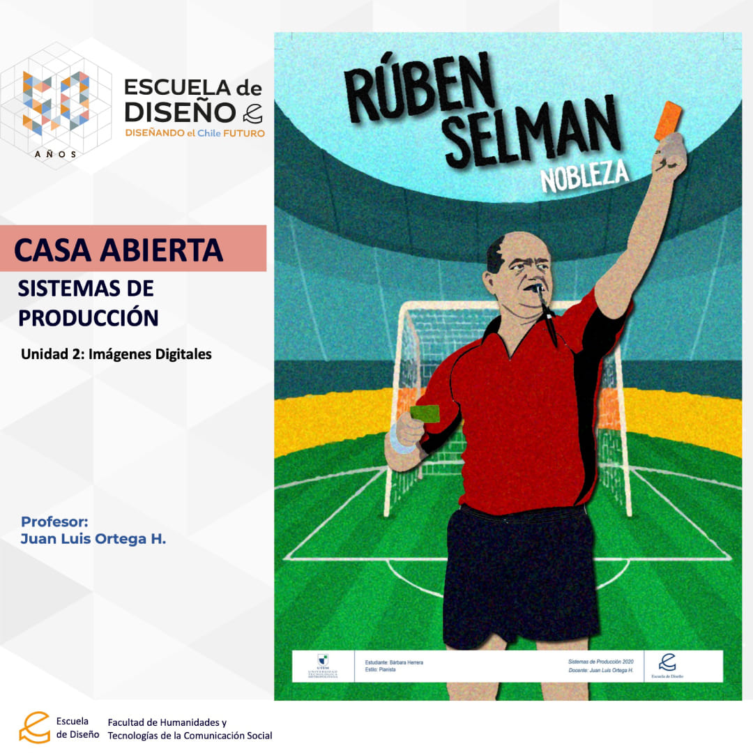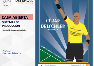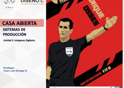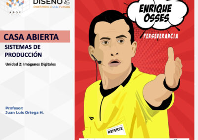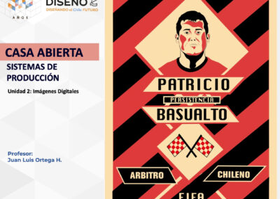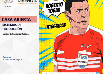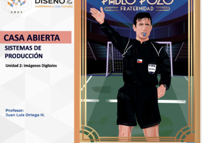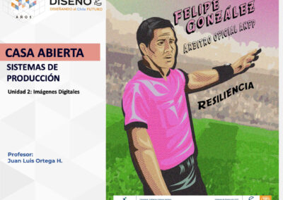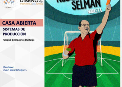Creación de ilustraciones con paletas cromáticas a elección de los/las/les estudiantes, bajo la temática conceptual: “Árbitros del fútbol chileno”.