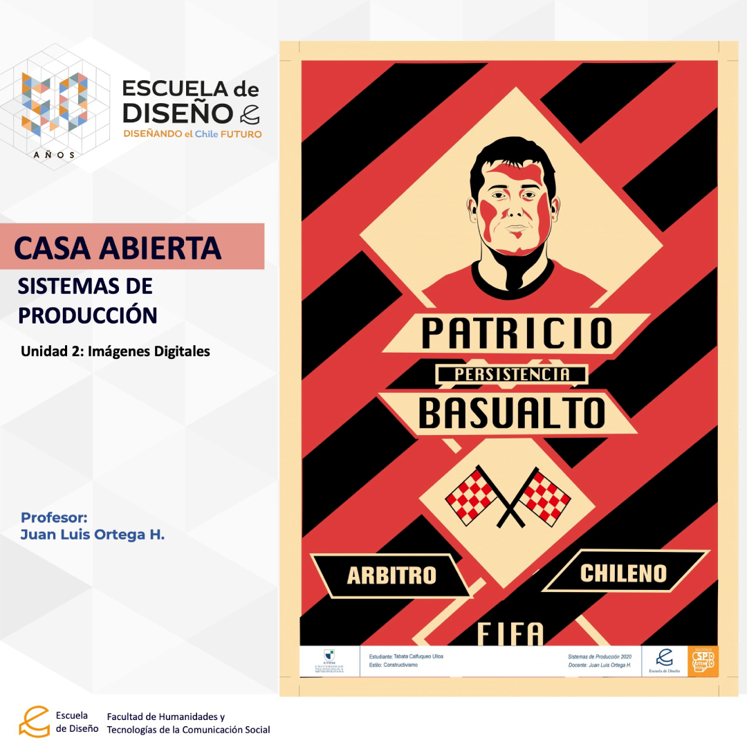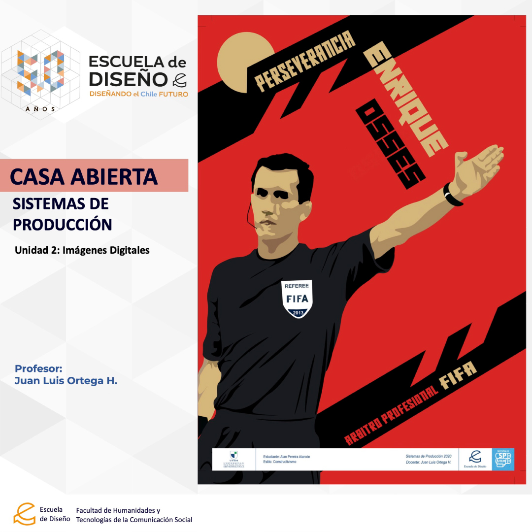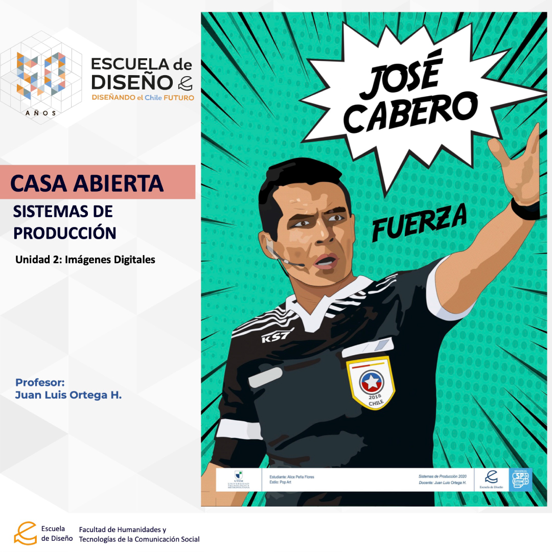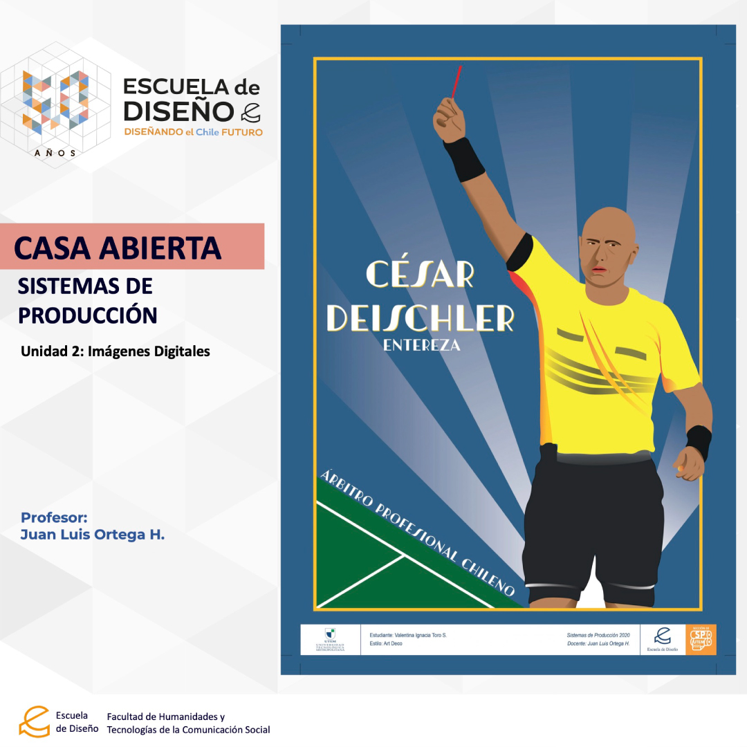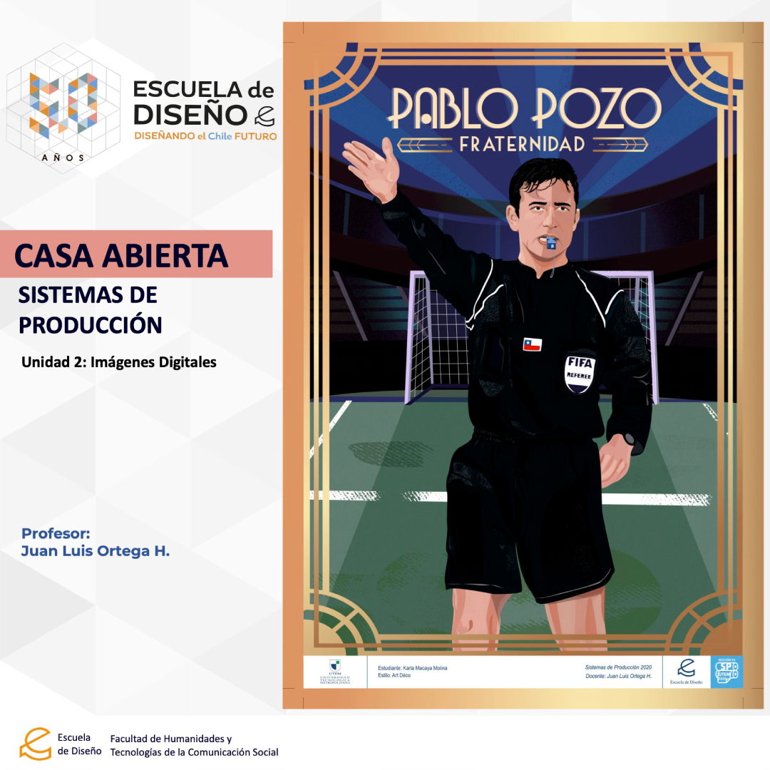 Creación de ilustraciones con paletas cromáticas a elección de los/las/les estudiantes, bajo la temática conceptual: “Árbitros del fútbol chileno”.