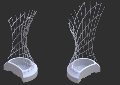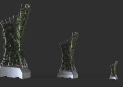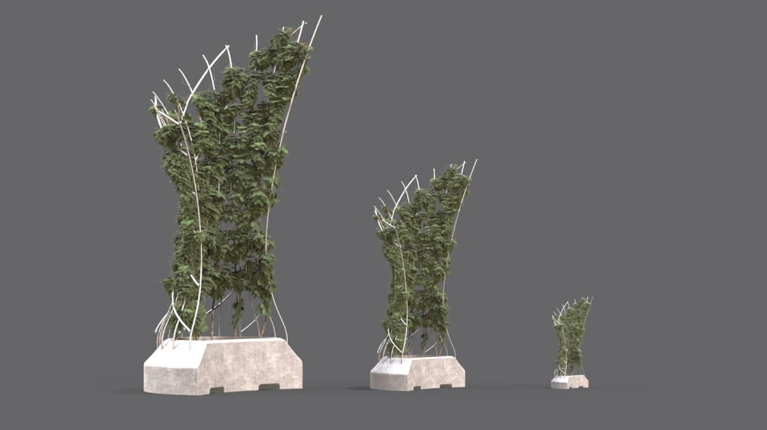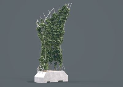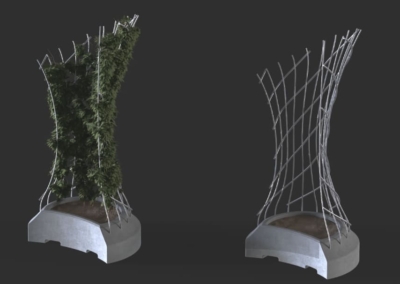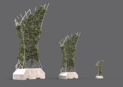 Diseñar un tipo de mobiliario vertical que permita el crecimiento de plantas trepadoras en su estructura. A través de la búsqueda de referentes, técnicas de producción actuales y el desarrollo de ideas, bocetos y propuestas. Para tener elementos que puedan ser colocados en espacios en desuso, permitiendo revalorizarlos y dotarlos de nuevos significados y usos para las comunidades que conviven con ellos.