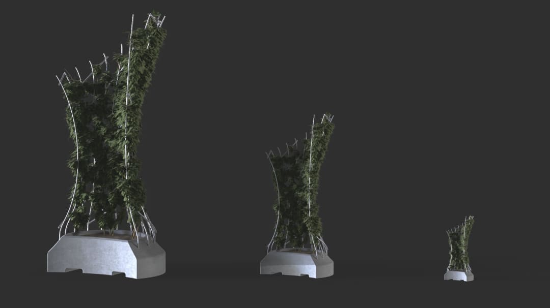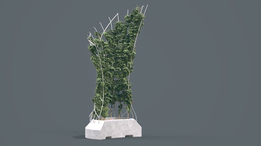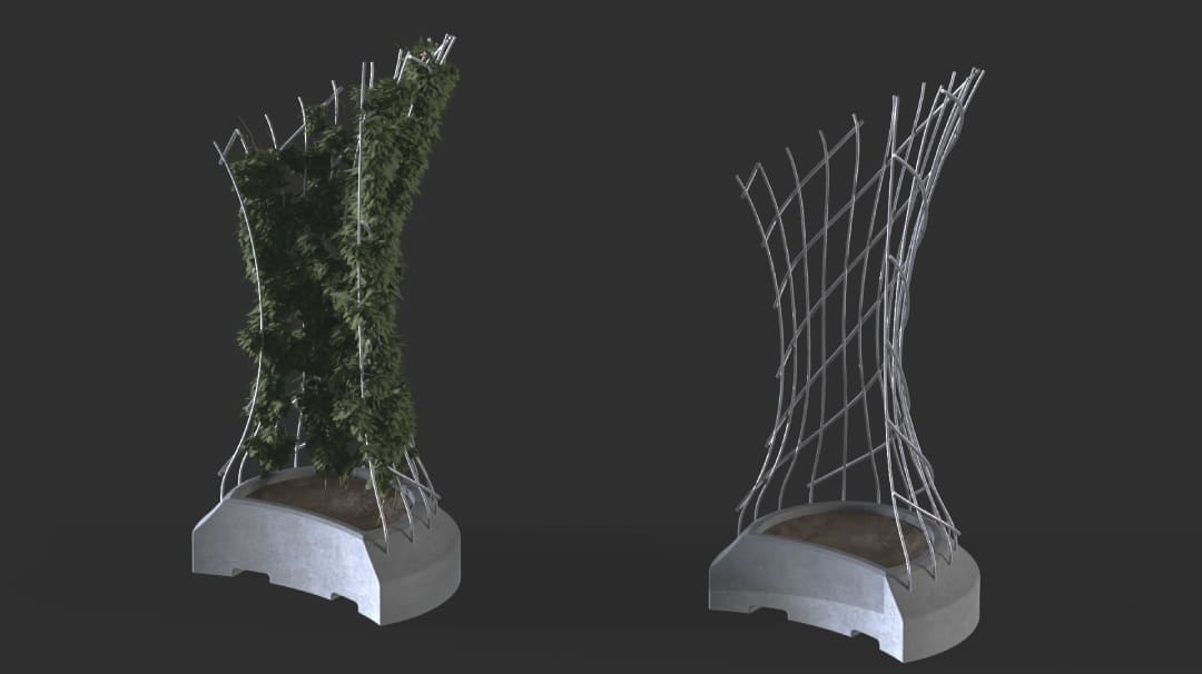 Desarrollar el diseño de un mobiliario vertical de uso público que acoja el crecimiento de plantas trepadoras. Por medio de la generación y evaluación de bocetos, prototipos digitales y propuestas formales. Con el propósito de presentar al diseño del elemento como propuesta que fuera capaz de situarse y satisfacer la oportunidad detectada.