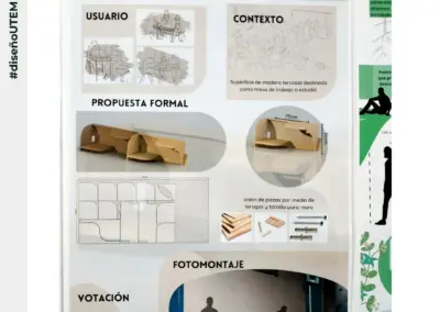Los problemas identificados por los estudiantes abarcaban 3 ámbitos principales: descanso, estudio y alimentación. En la entrega se presentaron las ideas de proyecto que se generaron en el taller, y a través del sufragio los estudiantes elegían aquellos proyectos que mejor responden a sus necesidades de infraestructura.