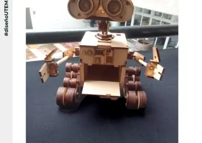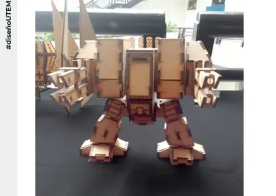 En este proyecto, los estudiantes realizaron modelados 3d de madera con tecnología de CNC láser, a partir de un prototipado realizado en programas de edición como autoCAD, Illustrator o similar.