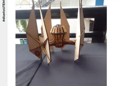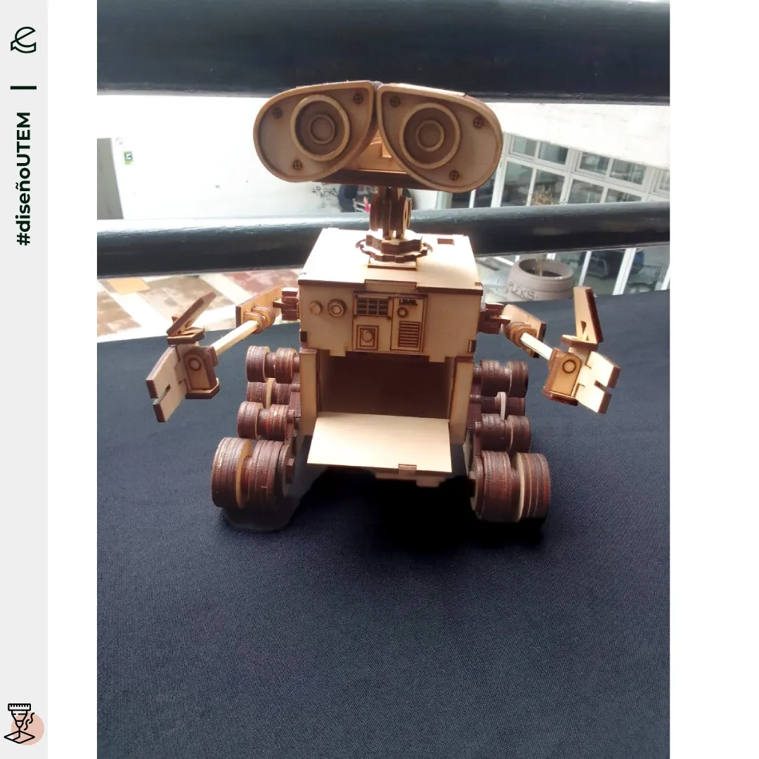🗜️ Como cierre de la primera unidad, generaron un archivo de vectores que posteriormente programaron desde el software de la CNC Láser, ya sea para un corte o grabado del material, exponiendo temática y concepto libre. Pueden visualizar objetos como: Wall-E, Star Wars, Biplanos, entre otros.