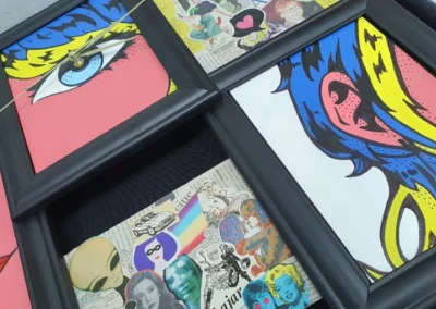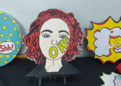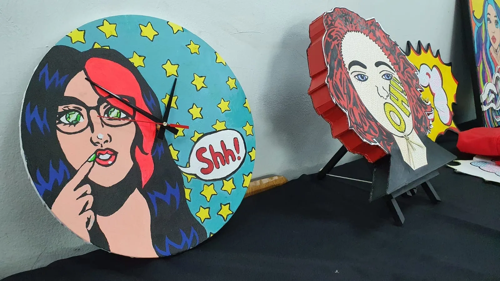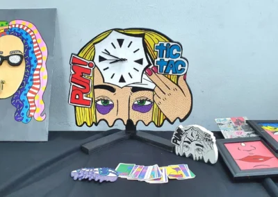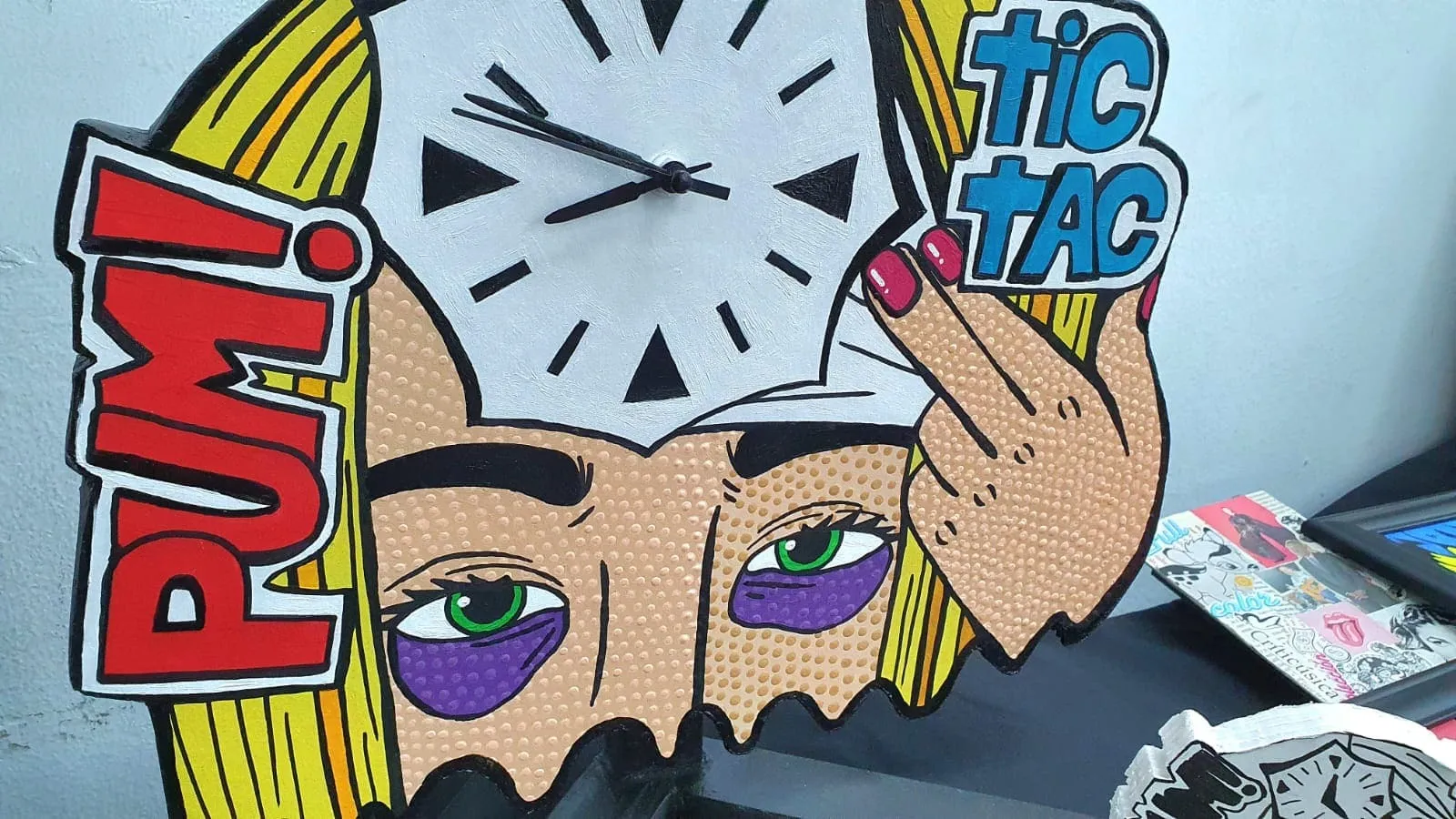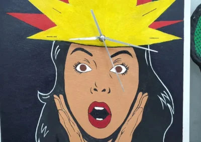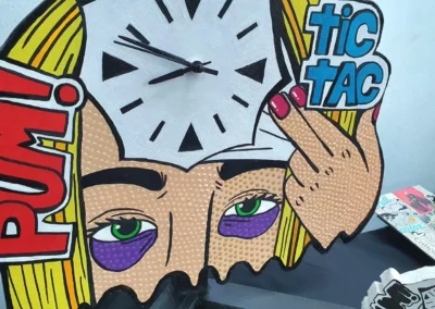 A partir de la expresión gráfica, la iconicidad, la retórica visual y la propiedad del movimiento artístico POP-ART, se crean diseños funcionales como el reloj. El POP-ART o “Arte POP” es un movimiento artístico que surge en el siglo XX, entre las décadas del 50′ – 60′ con alto apogeo en los 80′. El mensaje visual que entrega, se contextualiza en la crítica social y la vida cotidiana.