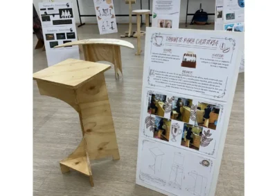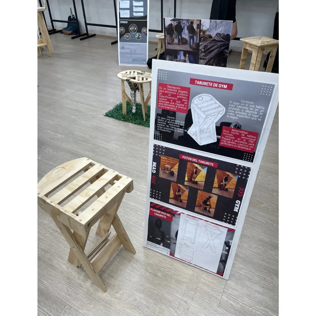Cada taburete fue exhibido en el Hall Central de la Escuela, donde se pudo recorrer y apreciar cada diseño con sus respectivas investigaciones.