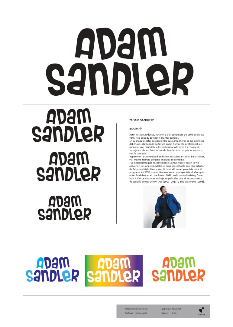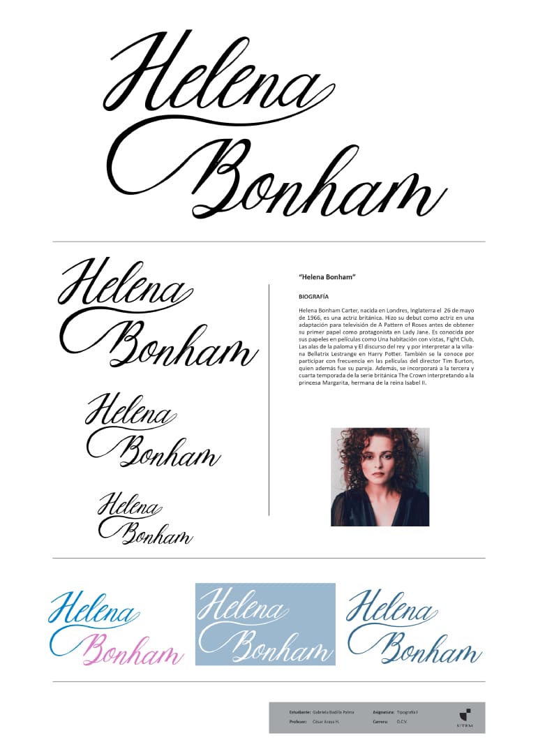 Los/las/les estudiantes crearon un sistema tipográfico vinculado a las cualidades de una celebridad en particular, elegido por cada uno (a-e); en este sentido realizaron una conceptualización de marca asociada al nombre, probando tamaño proporción y cromática de pruebas, además de la construcción caligráfica de las letras utilizadas.