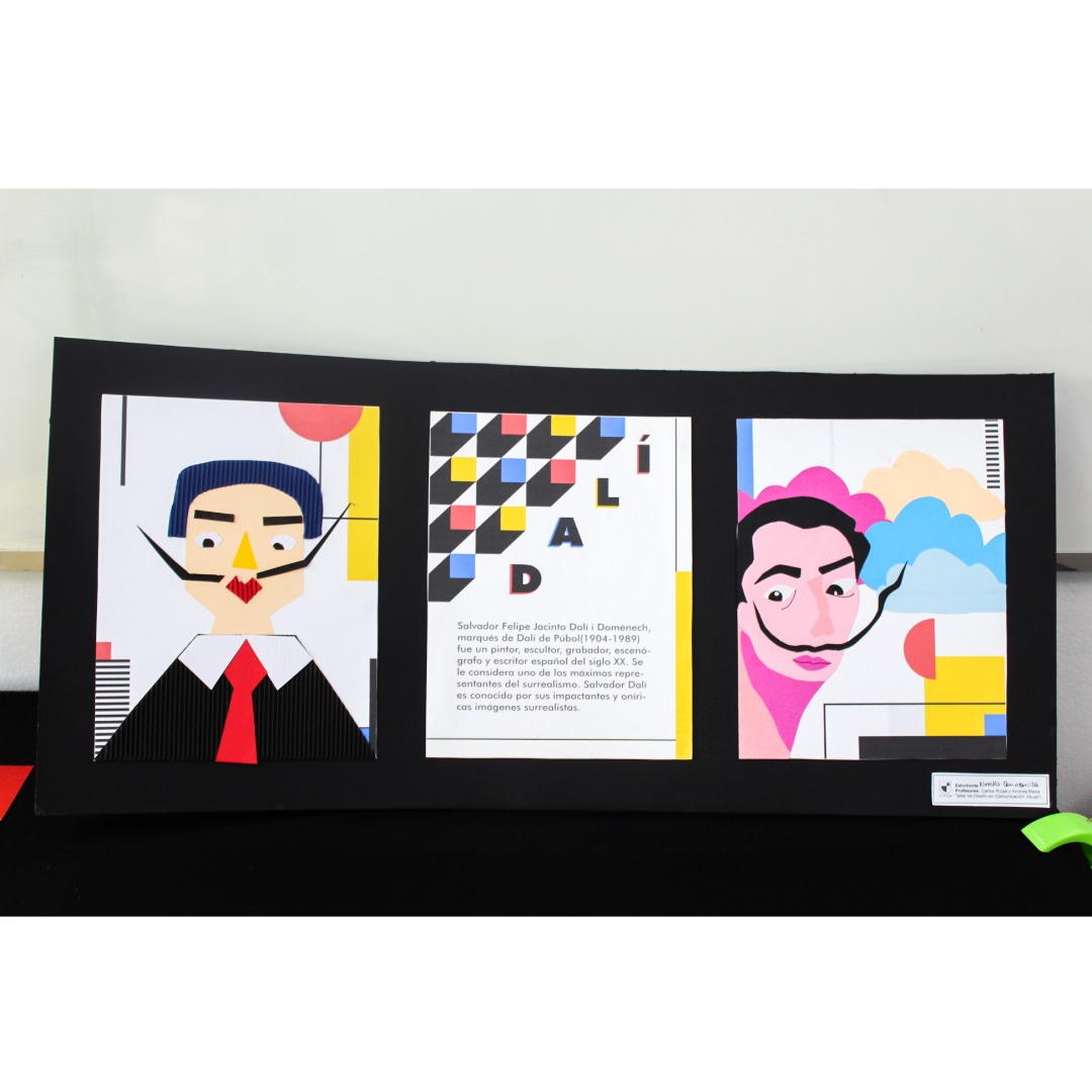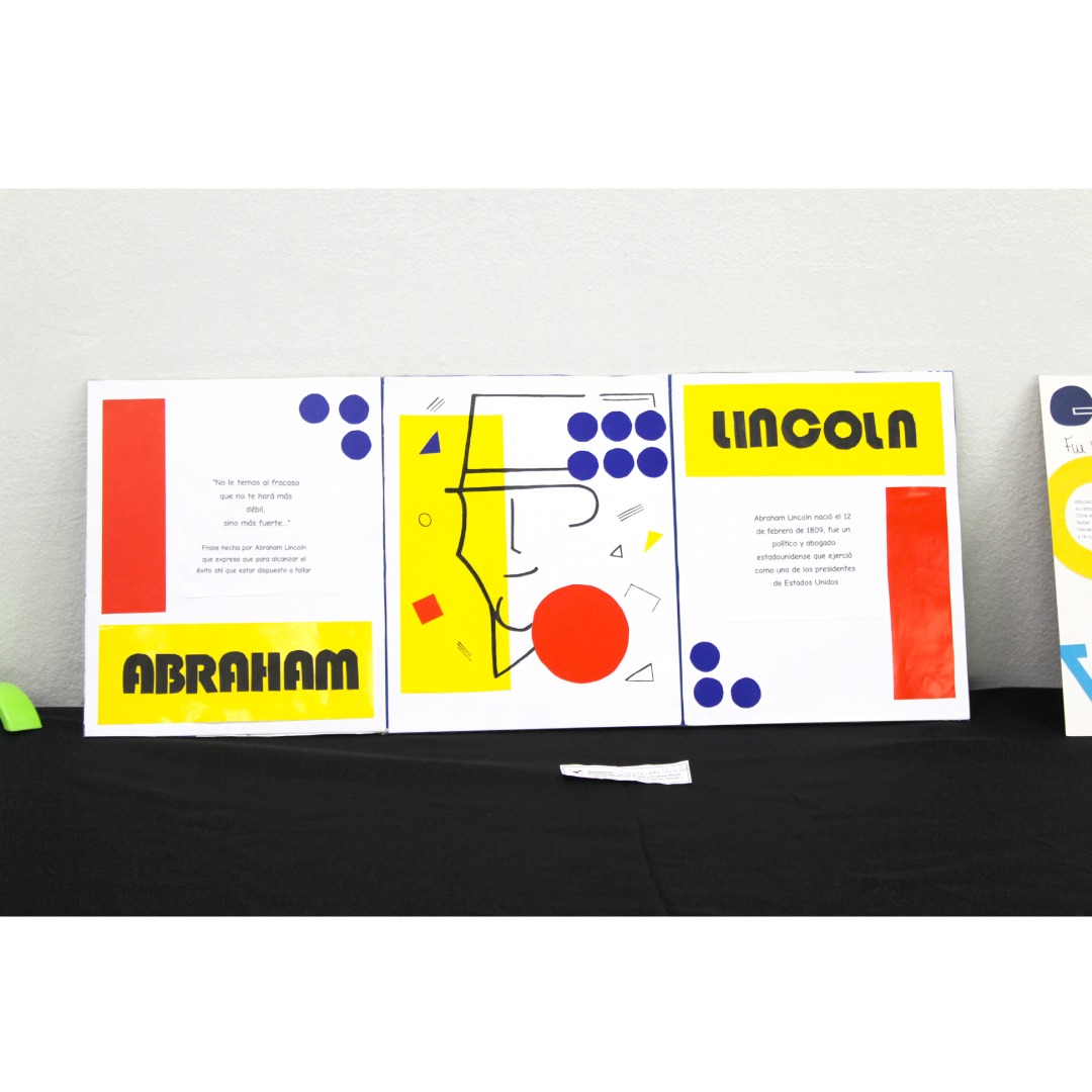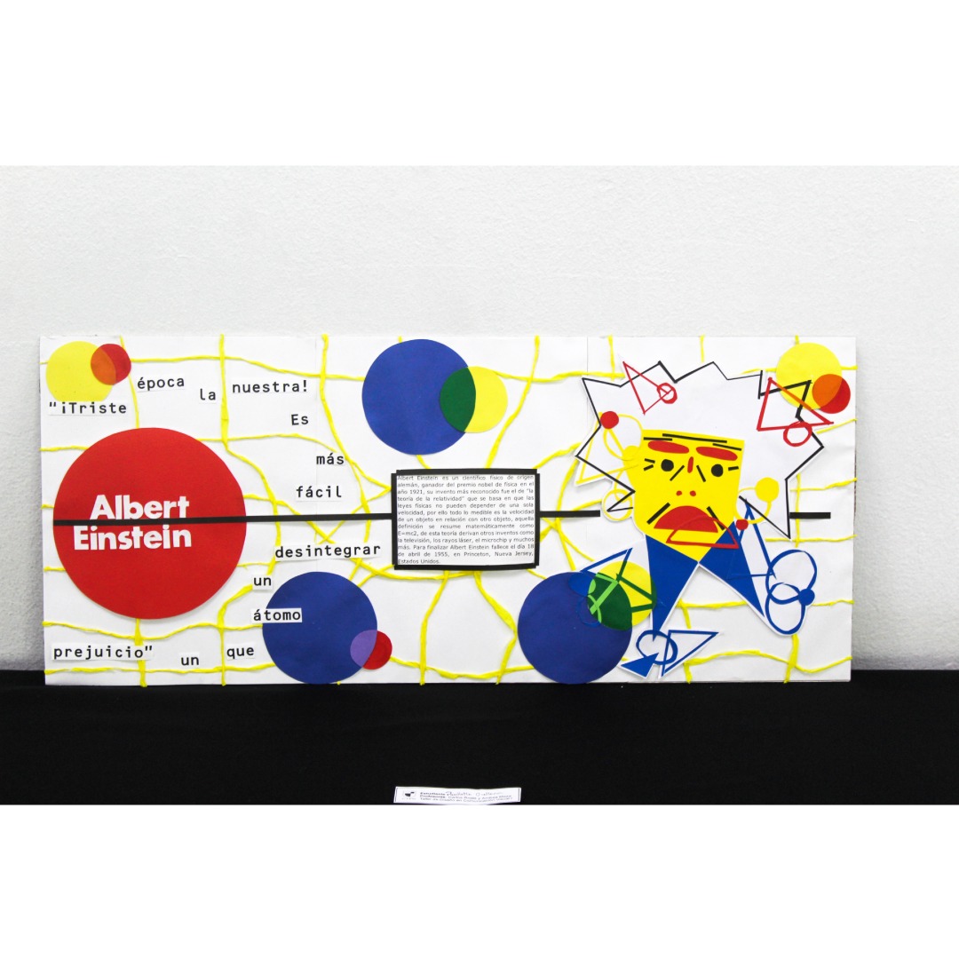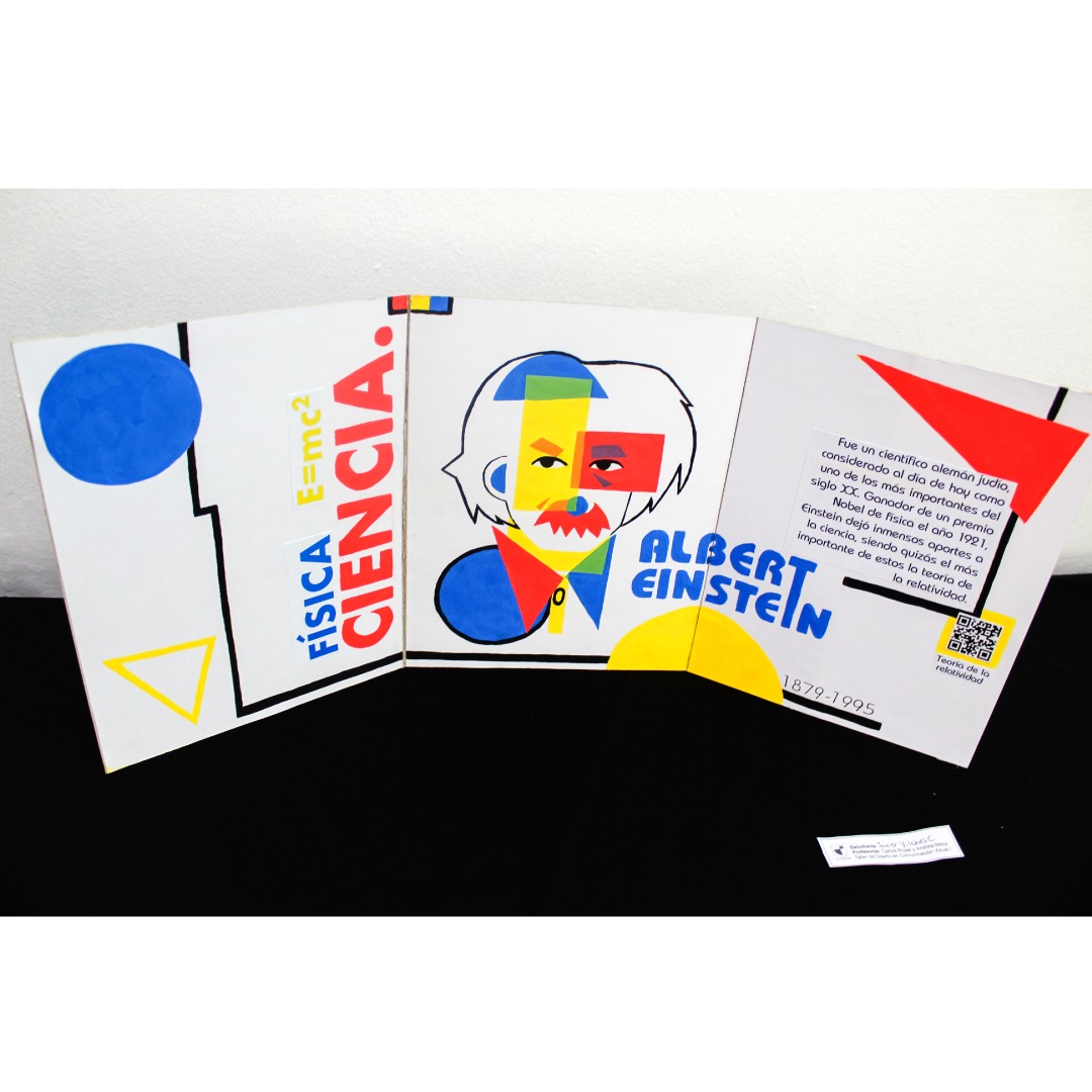 Eligieron un personaje histórico, el cual graficaron sus rasgos pertinentes y en complemento cuentan una parte de la historia, todo esto con ambientación y elementos gráficos que representen el arte de la Bauhaus.