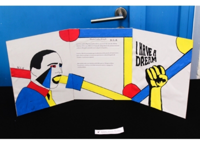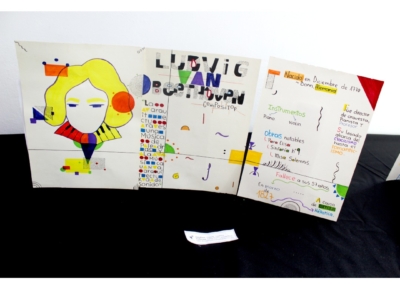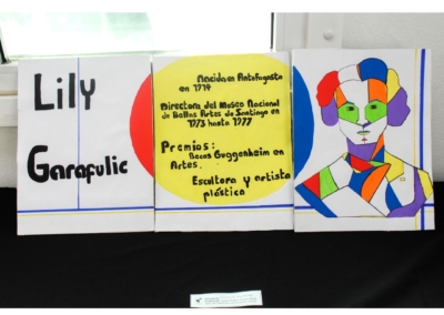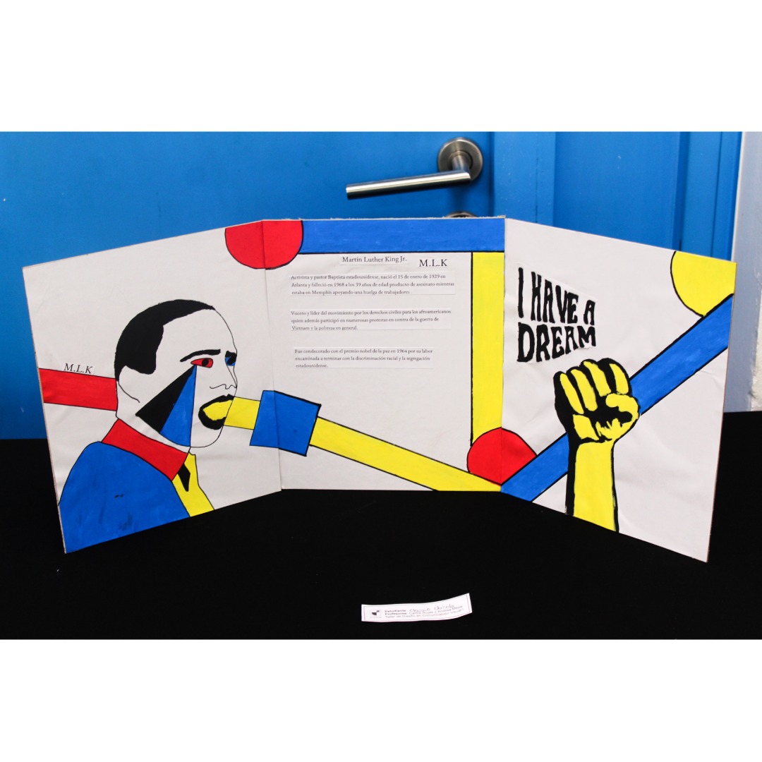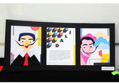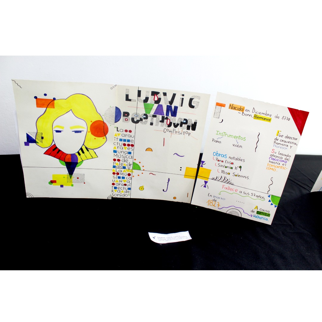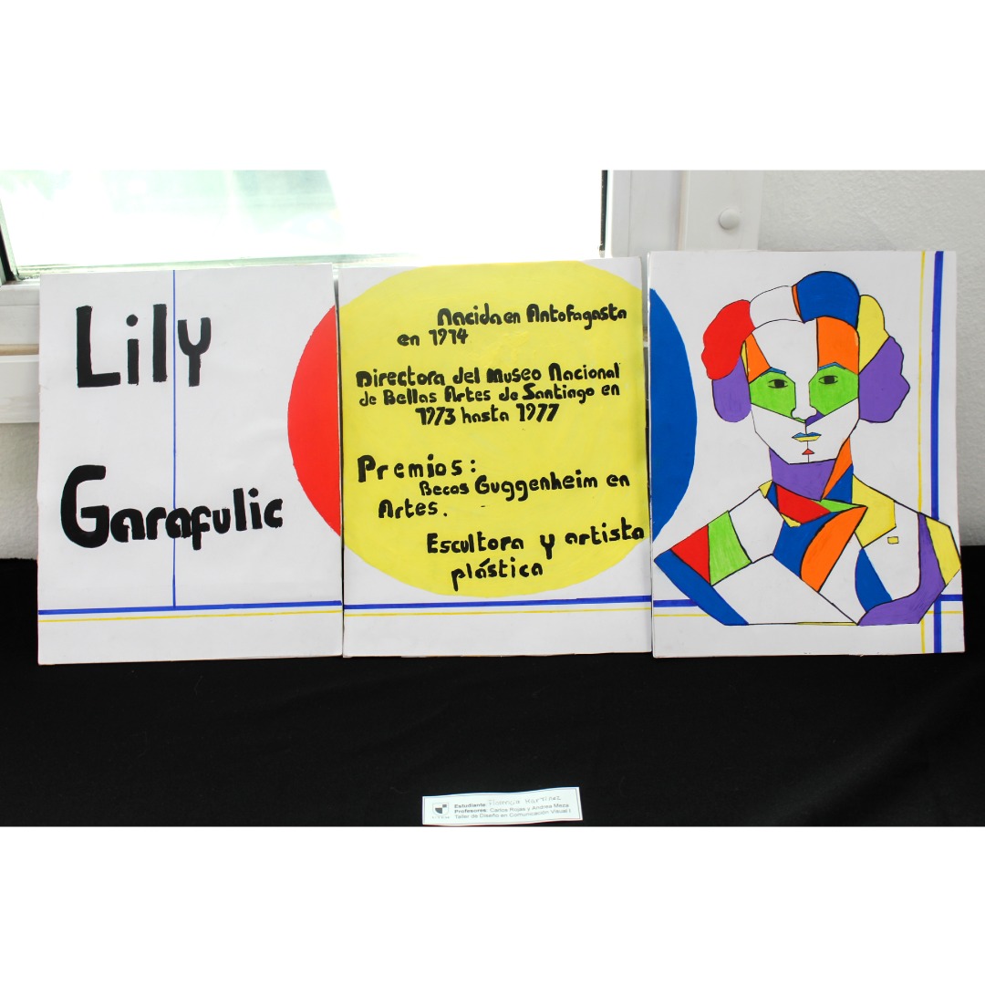 Eligieron un personaje histórico, el cual graficaron sus rasgos pertinentes y en complemento cuentan una parte de la historia, todo esto con ambientación y elementos gráficos que representen el arte de la Bauhaus.