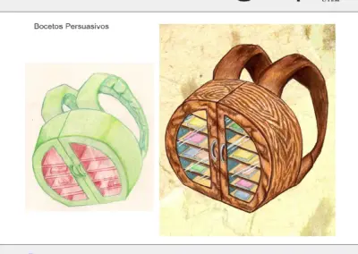 – Boceto Persuasivo, ilustrando el objeto resultante de forma atractiva a través del dominio de la línea y el color según las posibilidades de las técnicas de dibujo seleccionadas.