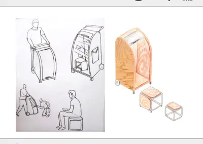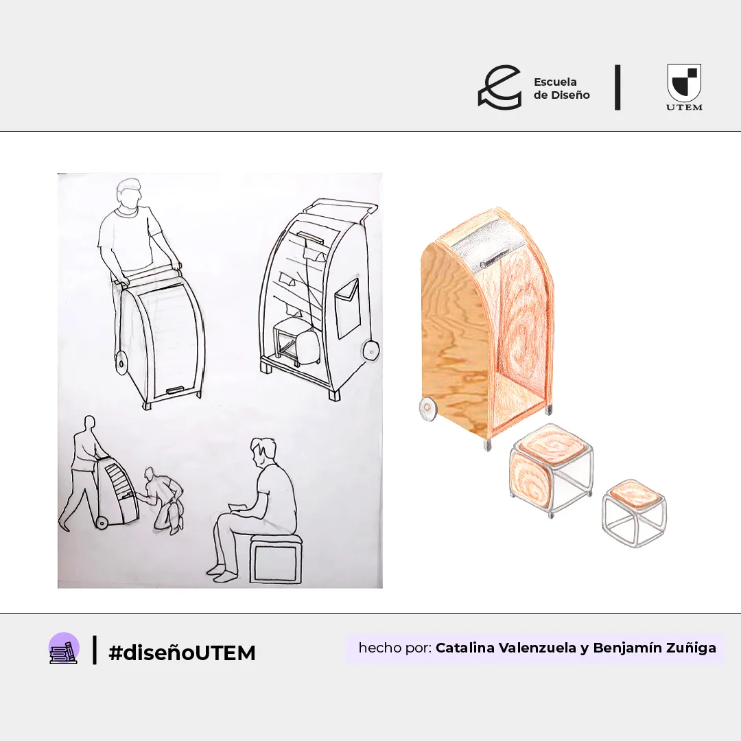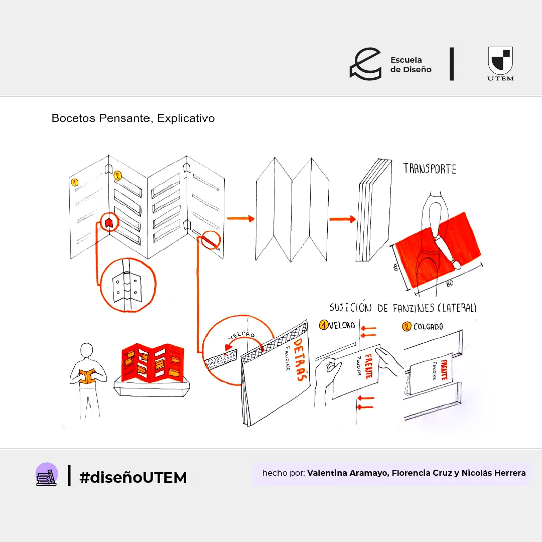 En este proyecto, los/as estudiantes diseñaron una biblioteca portátil para fanzines o libros textiles de fácil traslado, que pueda instalarse en algún lugar de la Universidad y transformarse así en un espacio lector.